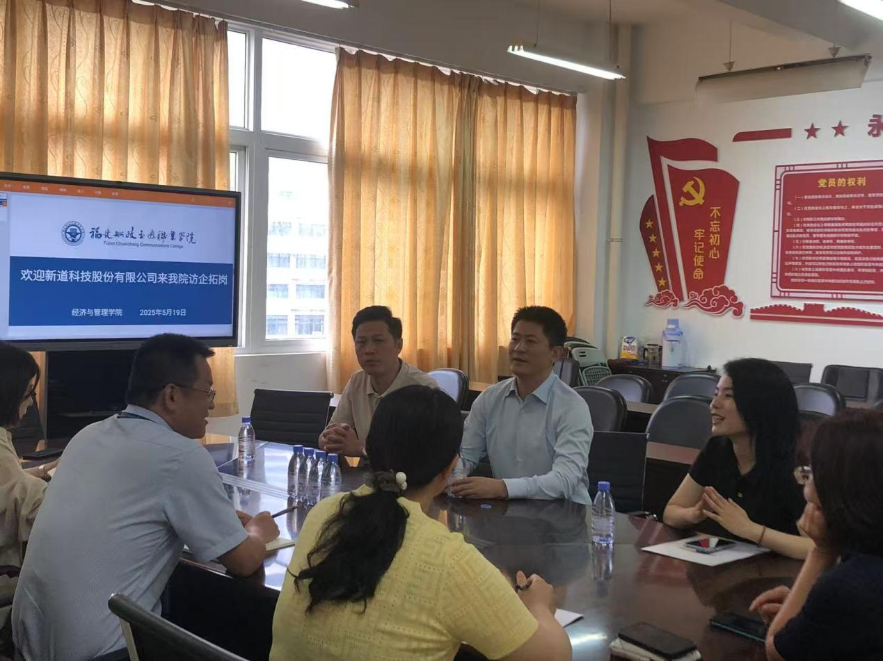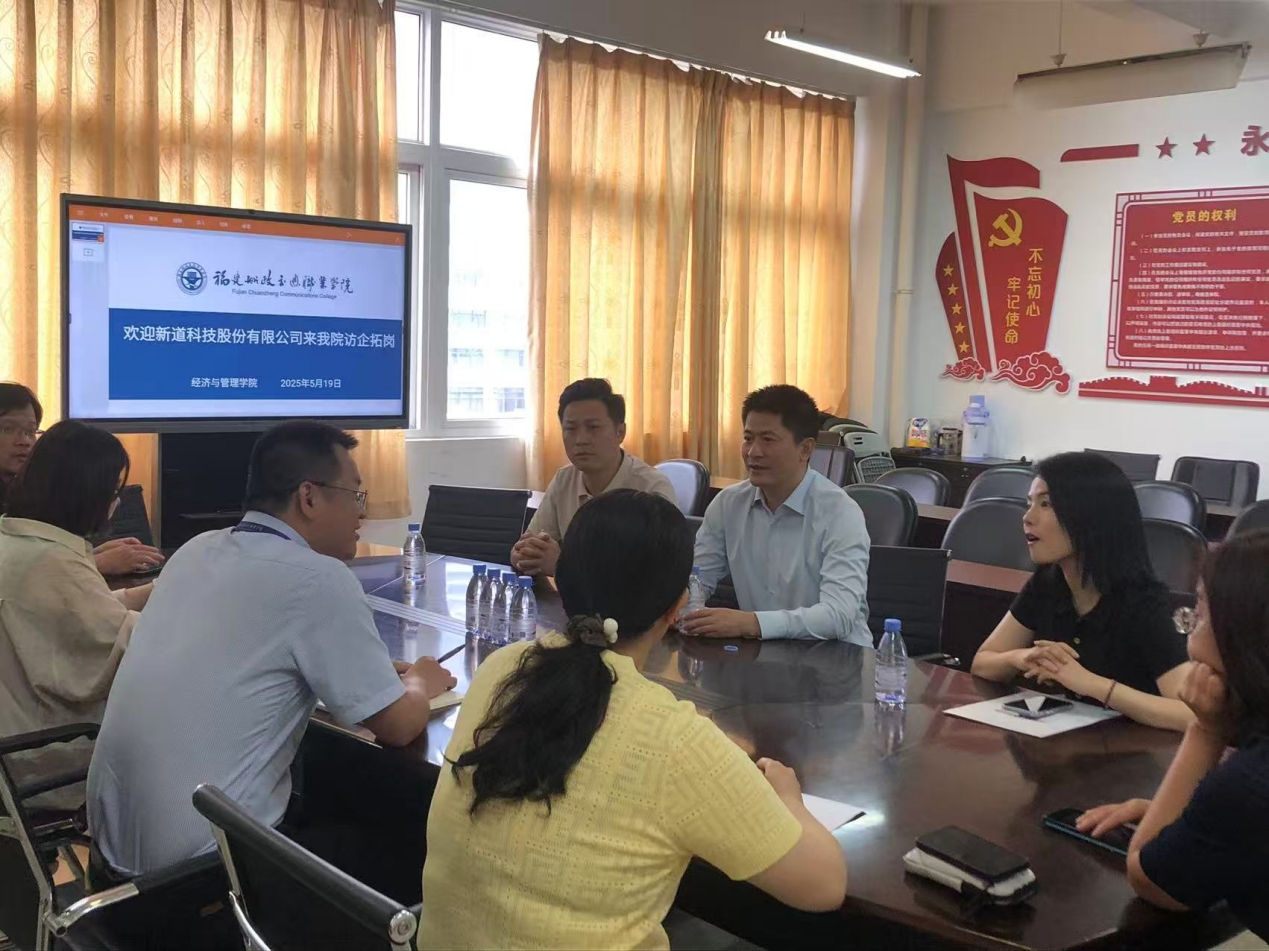 2025年5月19日下午,應(yīng)經(jīng)濟(jì)與管理學(xué)院的邀請(qǐng),用友集團(tuán)旗下新道科技股份有限公司的總經(jīng)理羅勇官、副總經(jīng)理?xiàng)畈碰?、總監(jiān)華菁等公司領(lǐng)導(dǎo),在學(xué)院412會(huì)議室開展訪企拓崗促就業(yè)活動(dòng),經(jīng)濟(jì)與管理學(xué)院阮毅副書記(主持行政工作)主持了本次活動(dòng),大數(shù)據(jù)與會(huì)計(jì)教研室主任林潔瑩攜教研室骨干教師參會(huì)。校企雙方圍繞著專業(yè)建設(shè)、技能競(jìng)賽、課程開發(fā)、產(chǎn)教融合和學(xué)生就業(yè)等議題展開深入交流,共同謀劃未來三年校企協(xié)同發(fā)展藍(lán)圖。