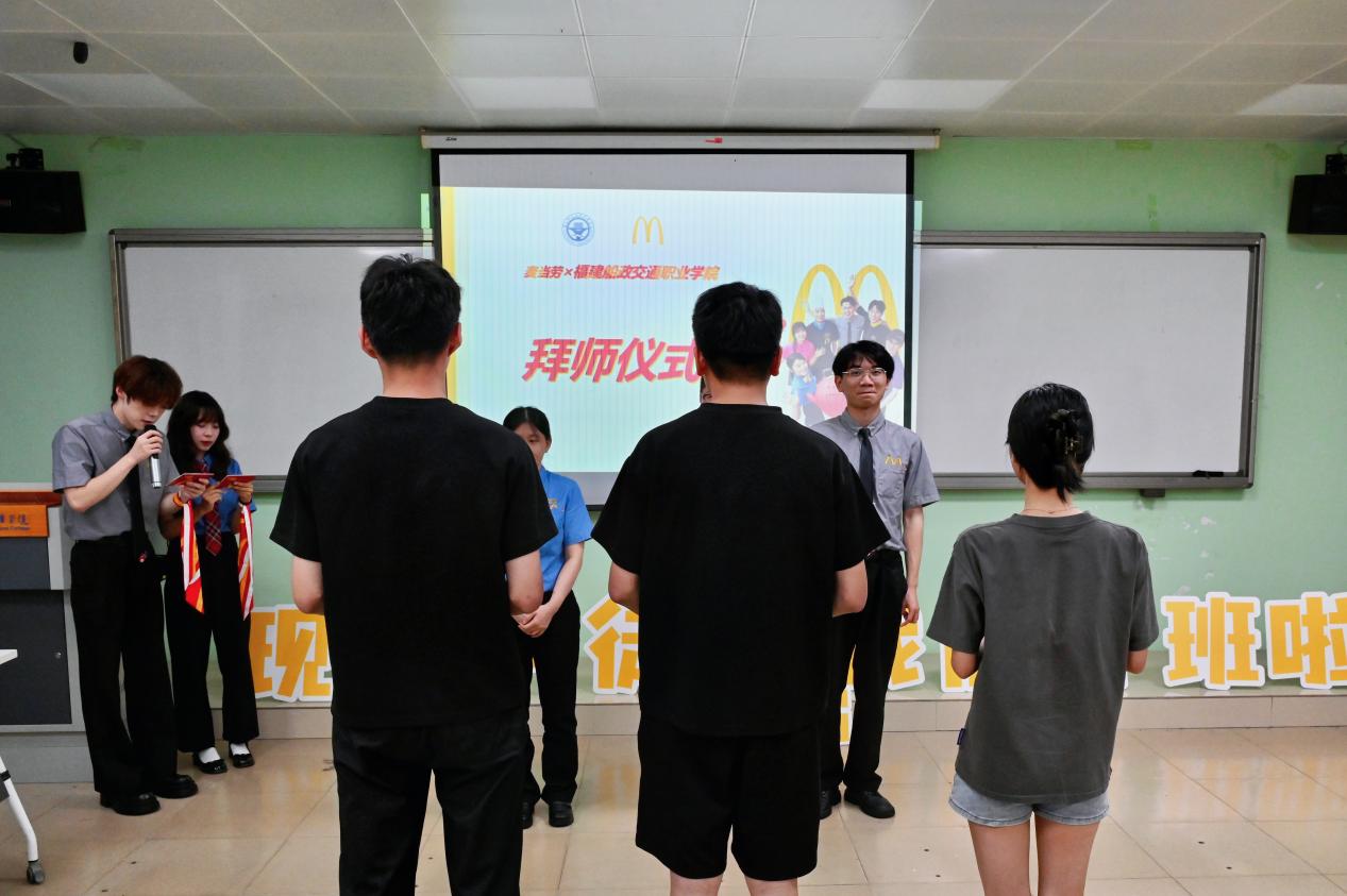 開班儀式上,第五屆訂單班的學(xué)徒們懷著崇敬之心,向麥當(dāng)勞導(dǎo)師們鞠躬行禮,敬上拜師茶。一杯香茗,傳遞的不僅是師徒情誼,更是知識與技能的傳承。