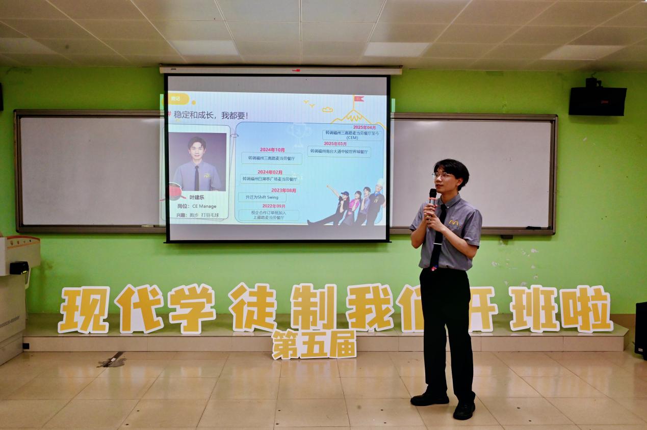 從第二屆訂單班成長起來的葉建樂學(xué)長,如今已成長為一名顧客體驗經(jīng)理,獨立負責(zé)一家餐廳的所有業(yè)務(wù)。他熱情分享道:“在訂單班的學(xué)習(xí)與實踐,讓我快速掌握了市場營銷與餐廳運營的核心技能。只要大家保持學(xué)習(xí)熱情,勇于挑戰(zhàn)自我,都能在麥當(dāng)勞收獲屬于自己的精彩!”