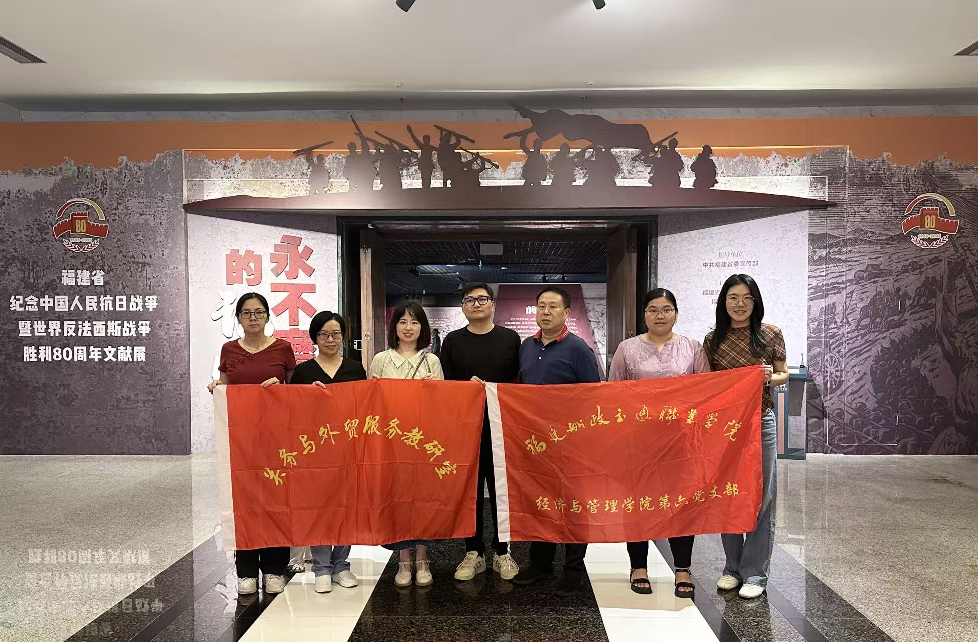 為紀念中國人民抗日戰(zhàn)爭暨世界反法西斯戰(zhàn)爭勝利80周年,9月5日,經(jīng)濟與管理學院第六黨支部暨關(guān)務(wù)與外貿(mào)服務(wù)教研室全體黨員前往福建省博物館,參觀“紀念中國人民抗日戰(zhàn)爭暨世界反法西斯戰(zhàn)爭勝利80周年文獻展”。