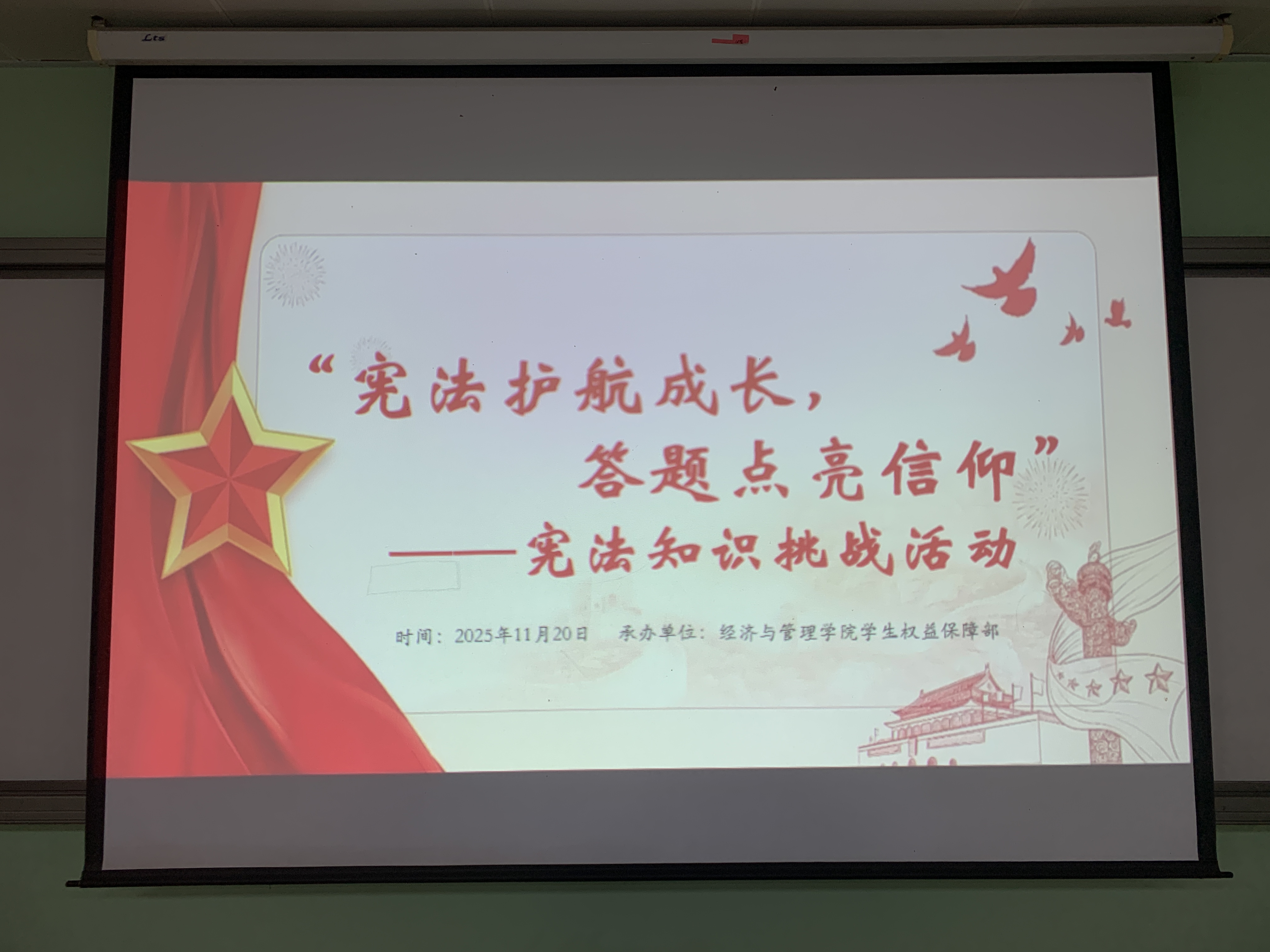 為深入學(xué)習(xí)貫徹習(xí)近平法治思想,弘揚(yáng)憲法精神,增強(qiáng)青年的憲法意識、法治觀念與素養(yǎng),引導(dǎo)其自覺尊法學(xué)法守法用法,讓法治力量護(hù)航青春成長,我院將于2025年12月4日16:00—17:00,在南區(qū)經(jīng)管樓407舉辦“憲法護(hù)航成長,答題點(diǎn)亮信仰”憲法知識挑戰(zhàn)活動。