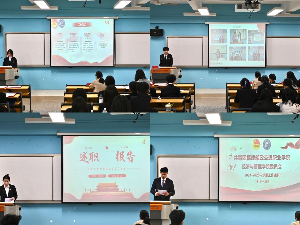 我院團(tuán)委學(xué)生會(huì)2024-2025學(xué)年第二學(xué)期述職大會(huì)于2025年6月5日在經(jīng)管樓308教室順利召開。團(tuán)委宣傳委員官源、團(tuán)委組織委員陳艷蕓與全體部門負(fù)責(zé)人一同參會(huì),全面復(fù)盤學(xué)期工作成效,共商新學(xué)期發(fā)展規(guī)劃。