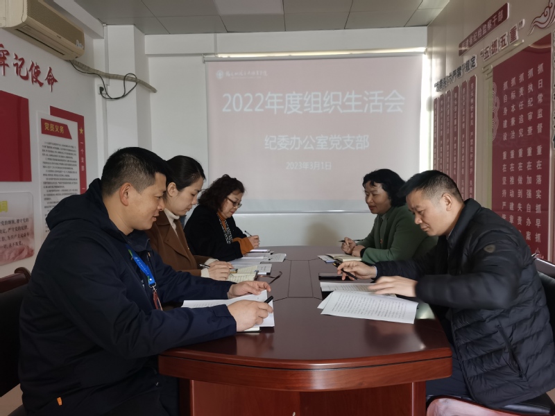 2023年3月1日上午,紀(jì)委辦黨支部召開(kāi)2022年度組織生活會(huì)。學(xué)校黨委委員、紀(jì)委書(shū)記張輝同志以普通黨員身份參加了所在黨支部的組織生活會(huì)。會(huì)議由紀(jì)委辦黨支部書(shū)記余土水主持。