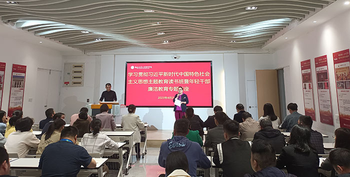 為深入貫徹落實(shí)黨中央關(guān)于加強(qiáng)新時(shí)代廉潔文化建設(shè)要求和省委教育工委關(guān)于廉潔學(xué)校建設(shè)的部署要求,推動(dòng)我校學(xué)習(xí)貫徹習(xí)近平新時(shí)代中國(guó)特色社會(huì)主義思想主題教育走深走實(shí),增強(qiáng)廣大年輕干部廉潔意識(shí)、風(fēng)險(xiǎn)意識(shí)和責(zé)任意識(shí)。4月25日下午,我校邀請(qǐng)廈門(mén)海洋職業(yè)技術(shù)學(xué)院黨委副書(shū)記繆雄平為年輕干部作《扣好廉潔從政“第一粒扣子”》專(zhuān)題講座。學(xué)校80后副科級(jí)以上年輕干部、各黨總支紀(jì)檢委員、紀(jì)委辦公室全體干部、校團(tuán)委兩委委員近80余人到場(chǎng)聆聽(tīng)講座。