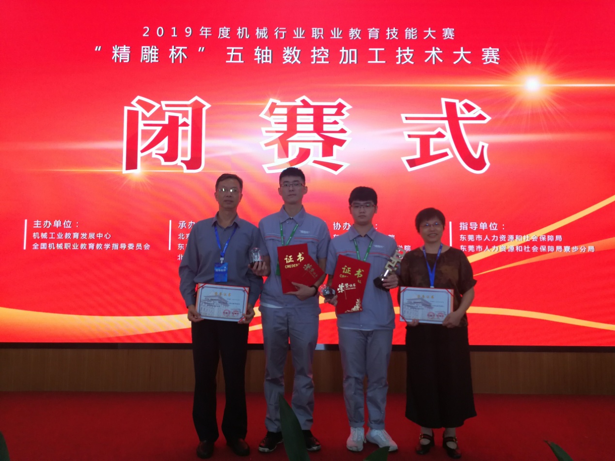 2019年度全國(guó)機(jī)械行業(yè)職業(yè)教育技能大賽——“精雕杯”五軸數(shù)控加工技術(shù)的比賽于1031日至112日在廣東東莞舉行,我院學(xué)生吳仲川、魏再煌組成的代表隊(duì)榮獲全國(guó)第二名暨一等獎(jiǎng),指導(dǎo)教師李云妹、謝祖華被評(píng)為“優(yōu)秀指導(dǎo)教師”,吳仲川、魏再煌兩位同學(xué)憑借嫻熟的技能和優(yōu)異的表現(xiàn)直接被北京精雕科技集團(tuán)有限公司錄用,畢業(yè)后可直接前往北京辦理入職手續(xù)。