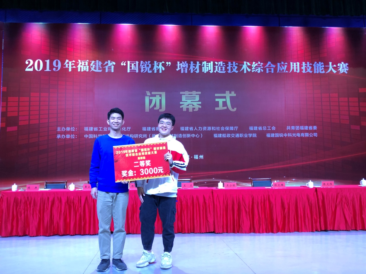 由福建省工業(yè)和信息化廳、福建省教育廳、福建省人力資源和社會(huì)保障廳、福建省總工會(huì)、共青團(tuán)福建省委主辦,福建船政交通職業(yè)學(xué)院、福建國銳中科光電有限公司承辦的2019年福建省“國銳杯”增材制造技術(shù)綜合應(yīng)用技能大賽于2020年1月6日落下帷幕,我系陳太麗老師以第二名的成績,榮獲職工組一等獎(jiǎng);學(xué)生組鄭世煌、陳則言(指導(dǎo)老師:謝宇玲)獲得二等獎(jiǎng);魏再煌、吳仲川(指導(dǎo)老師:李云妹)與董謹(jǐn)浩、陳良星(指導(dǎo)老師:謝祖華)分別獲得三等獎(jiǎng)。