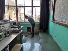 2020年3月23日上午機械工程系召開教研會議,會上楊開懷主任表示疫情期間雖然無法進行實踐教學(xué),但實驗室應(yīng)該時刻進入開學(xué)前的預(yù)備狀態(tài),并要求系實訓(xùn)中心近期安排部分老師進校,對實驗實訓(xùn)室進行開學(xué)前的通風、清潔、設(shè)備維護工作。結(jié)合院實訓(xùn)中心的工作安排,系實訓(xùn)中心在3月24日上午組織各實驗室老師到校,對實驗實訓(xùn)室進行安全大巡查。此次工作重點是對各實驗場所進行通風、除塵、水電門窗檢查、安全和消防巡查及設(shè)備維護,并對發(fā)現(xiàn)的隱患及時進行整改。老師們嚴格根據(jù)實驗室相關(guān)管理細則,首先對實驗室進行開窗通風,保持室內(nèi)外空氣流通,以防有毒有害氣體留在室內(nèi)對人員造成傷害;再通過開空調(diào)、抽濕機或開門窗等方式調(diào)整室內(nèi)溫濕度達到規(guī)定條件;同時對實驗場所進行清掃、除塵處理;最后對儀器設(shè)備進行開機試運行維護。