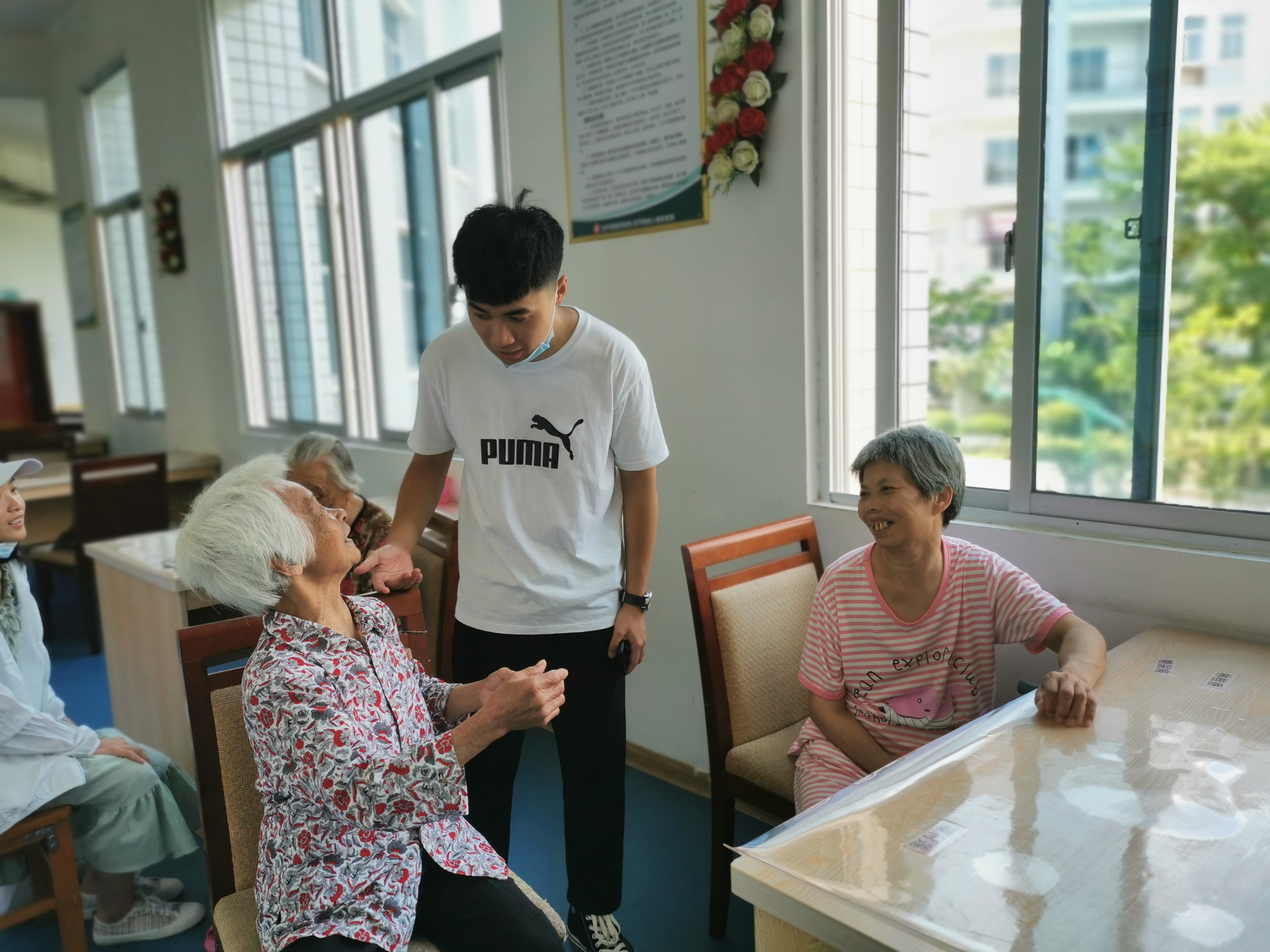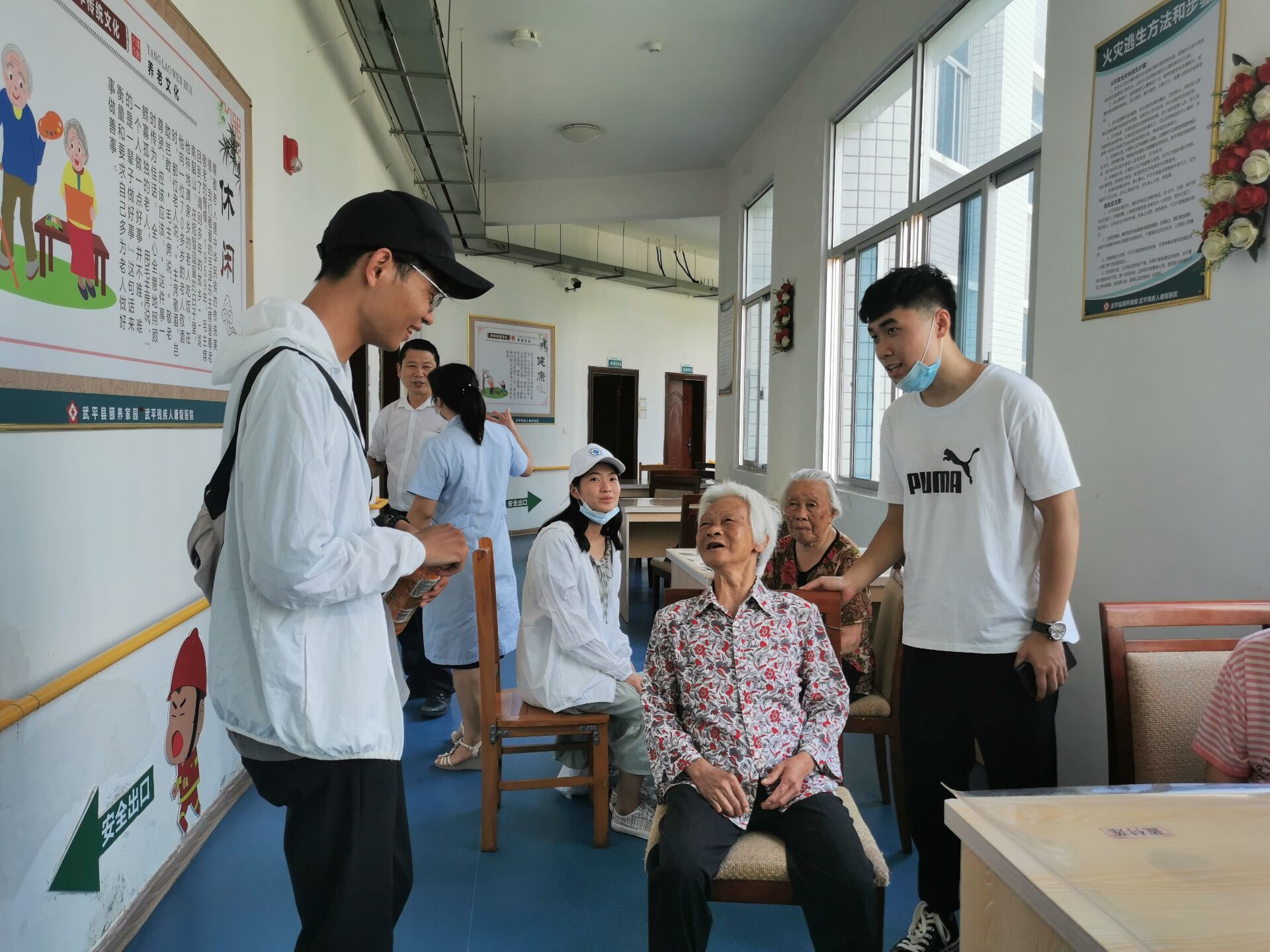 疫情無(wú)情人有情,老年人是此次疫情的易感人群,為守護(hù)、關(guān)愛老年人的健康,8月15日,實(shí)踐隊(duì)員前往武平縣頤養(yǎng)家園福利院,為老人們送去了米、油等生活用品與防疫物資,幫助老人紓解情緒,并囑咐老人們要注意身體健康。疫情期間,隔斷的是病毒,隔不斷的是情感。對(duì)于實(shí)踐隊(duì)的關(guān)愛,老人們非常感動(dòng),并連連感謝隊(duì)員們對(duì)他們的關(guān)心和照顧。一句句深情的問候,一個(gè)個(gè)貼心的笑容,隊(duì)員們用責(zé)任和擔(dān)當(dāng)溫暖著每一位老人,學(xué)習(xí)貫徹了習(xí)近平總書記關(guān)于做好老人關(guān)愛服務(wù)工作的重要指示精神。
