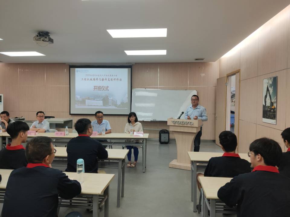 在開班儀式上,楊開懷院長(zhǎng)首先介紹了機(jī)械與智能制造學(xué)院工程機(jī)械專業(yè)的歷史沿革,專業(yè)建立以來持續(xù)深入的校企合作、產(chǎn)教融合,在課程優(yōu)化、實(shí)驗(yàn)室建設(shè)、技能競(jìng)賽等方面取得的豐碩成果,為我省乃至全國的工程機(jī)械行業(yè)輸送了大量的高素質(zhì)技能人才,贏得了良好口碑。希望與沃爾沃、天力機(jī)械設(shè)備有限公司在服務(wù)社會(huì)人員培訓(xùn),助力工程機(jī)械行業(yè)轉(zhuǎn)型升級(jí)方面進(jìn)一步開拓思路,創(chuàng)新工作舉措,緊密校企合作關(guān)系。