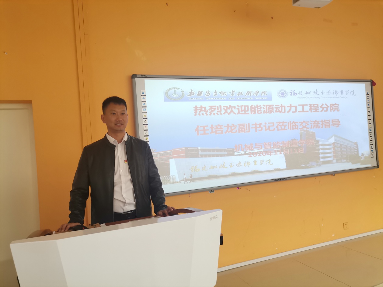 11月11日下午,機(jī)械與智能制造學(xué)院陳貴清副院長主持歡迎儀式,歡迎任培龍老師的到來。陳貴清副院長介紹了任培龍副書記的簡歷和此行學(xué)習(xí)交流的主要內(nèi)容。任副書記在發(fā)言中介紹了新疆昌吉職業(yè)技術(shù)學(xué)院的基本概況,指出福建與新疆昌吉是對口支援,學(xué)院的發(fā)展傾注了福建人民的無私奉獻(xiàn)和大愛精神。尤其是福建船政交通職業(yè)學(xué)院搭建了閩昌職教交流橋梁,兩校之間頻繁互動,有力地促進(jìn)了東西部高職教育的融合發(fā)展。福建船政交通職業(yè)學(xué)院作為國家“雙高?!苯ㄔO(shè)單位,此次很榮幸有機(jī)會加入機(jī)械與智能制造學(xué)院隊(duì)伍中學(xué)習(xí)交流。最后,任副書記表示歡迎大家到新疆昌吉職業(yè)技術(shù)學(xué)院交流指導(dǎo)工作。
