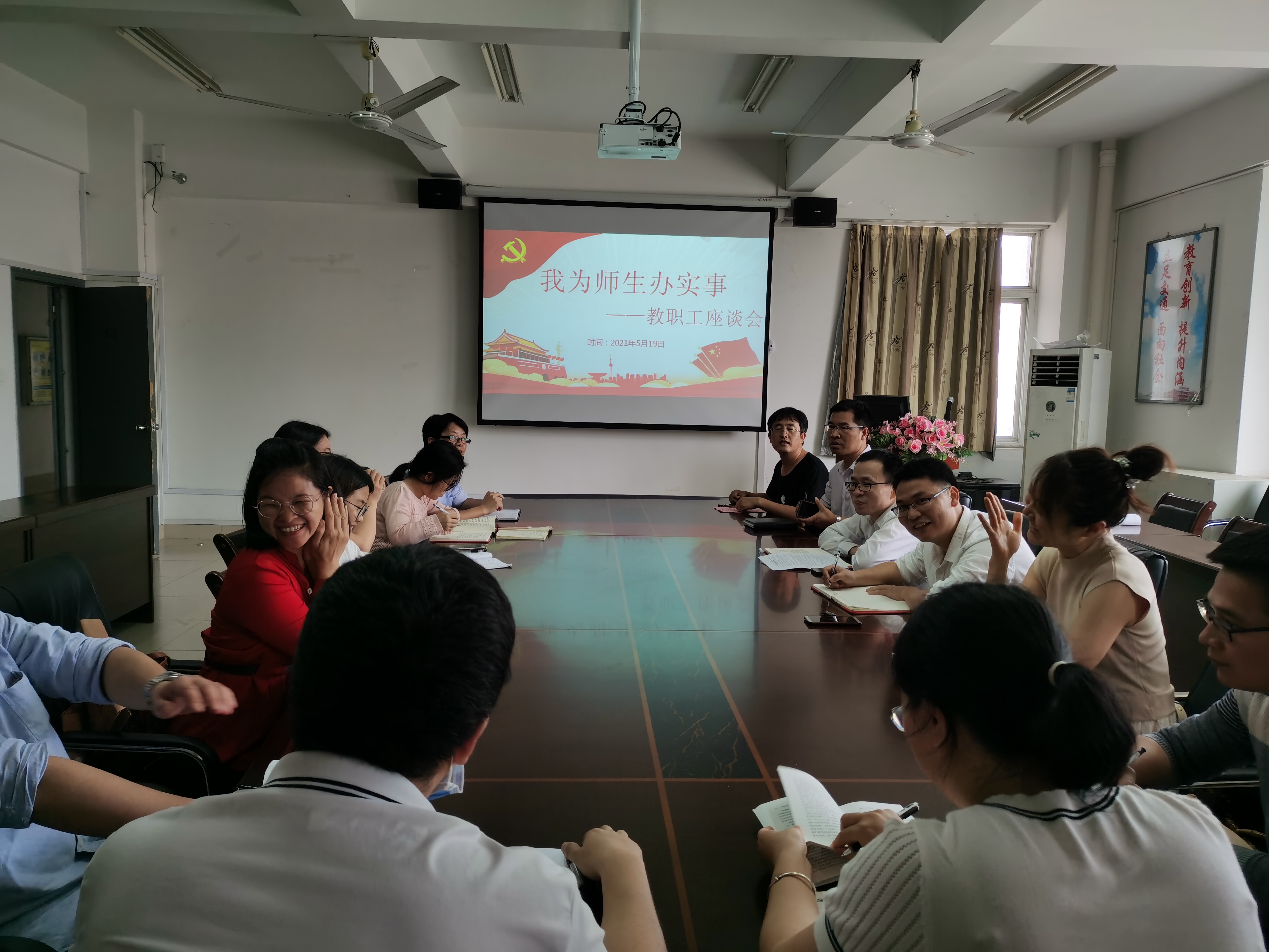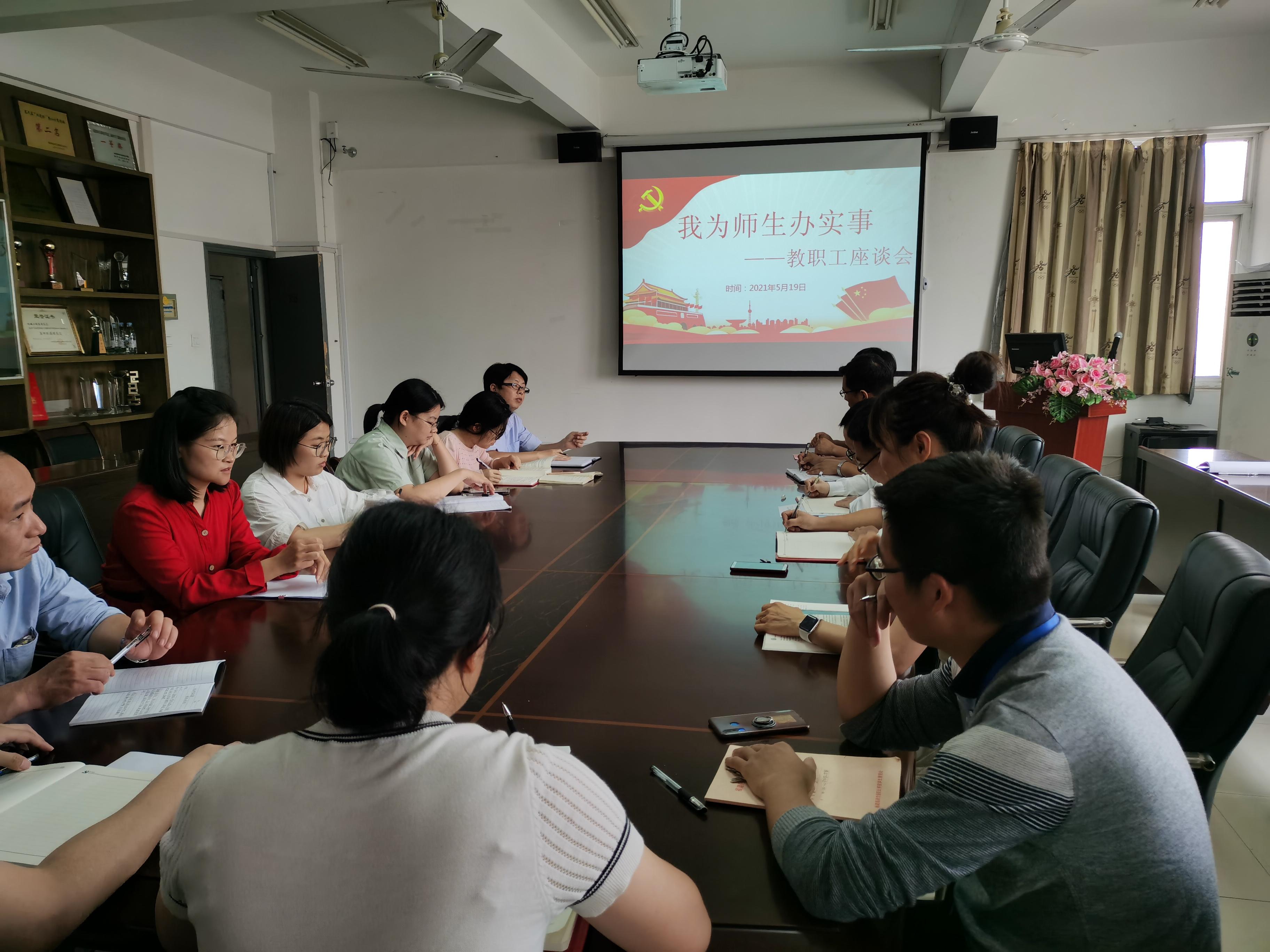 為慶祝中國(guó)共產(chǎn)黨成立100周年,進(jìn)一步落實(shí)習(xí)近平總書記在黨史學(xué)習(xí)教育動(dòng)員大會(huì)上的講話精神,把學(xué)習(xí)黨史同總結(jié)經(jīng)驗(yàn),把學(xué)習(xí)成效轉(zhuǎn)化為工作動(dòng)力和成效,強(qiáng)化公仆意識(shí)和為民情懷。5月19日下午,我院開展了“我為師生辦實(shí)事”之教職工座談會(huì)。會(huì)議由黨總支副書記肖秀林主持,各教研室教師代表參加會(huì)議。