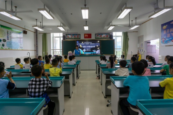 5月19日,我院機(jī)器人協(xié)會(huì)在福州市施程小學(xué)開(kāi)展“職教周”、“科技周”系列活動(dòng)之“助力科學(xué)普及,放飛科技?jí)粝搿睓C(jī)器人科普進(jìn)校園活動(dòng)。此次活動(dòng)共有3項(xiàng)科普內(nèi)容,分別是機(jī)器人知識(shí)普及、機(jī)器人作品展示與體驗(yàn)與機(jī)器人知識(shí)競(jìng)答?;顒?dòng)中,我院機(jī)器人協(xié)會(huì)成員向同學(xué)們講解了各類(lèi)人工智能機(jī)器人在多個(gè)領(lǐng)域的神奇作用,小朋友們對(duì)此反應(yīng)熱烈,引發(fā)了他們對(duì)未來(lái)智能社會(huì)的無(wú)限暢想,課堂氣氛濃厚活躍。