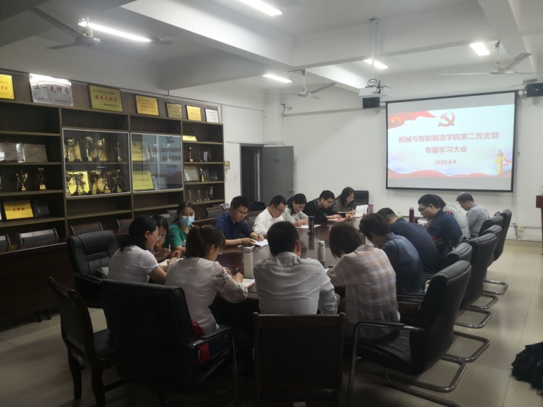 2021年5月8日機械與智能制造學(xué)院第二黨支部召開專題學(xué)習(xí)大會,組織學(xué)習(xí)《習(xí)近平在清華大學(xué)考察時強調(diào)堅持中國特色世界一流大學(xué)建設(shè)目標(biāo)方向為服務(wù)國家富強民族復(fù)興人民幸福貢獻(xiàn)力量》、《習(xí)近平致信祝賀廈門大學(xué)建校100周年》、《中國共產(chǎn)黨普通高等學(xué)?;鶎咏M織工作條例》、《中國共產(chǎn)黨黨員教育管理工作條例》、《中國共產(chǎn)黨支部工作條例(試行)》等文件精神。