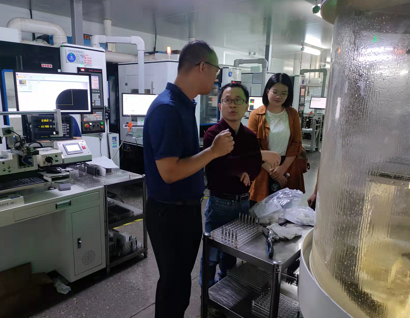 學(xué)院一行先后參觀了企業(yè)產(chǎn)品研發(fā)室、生產(chǎn)車間、設(shè)備生產(chǎn)組裝車間等,并同企業(yè)代表開展座談交流。會上,校企雙方圍繞開拓就業(yè)渠道和就業(yè)崗位、開展企業(yè)人才需求調(diào)查等方面展開交流,并期望校企雙方能夠加強(qiáng)科學(xué)研究、人才培養(yǎng)、學(xué)術(shù)交流和教學(xué)實(shí)踐等方面的合作,取得互利共贏的豐碩成果。
