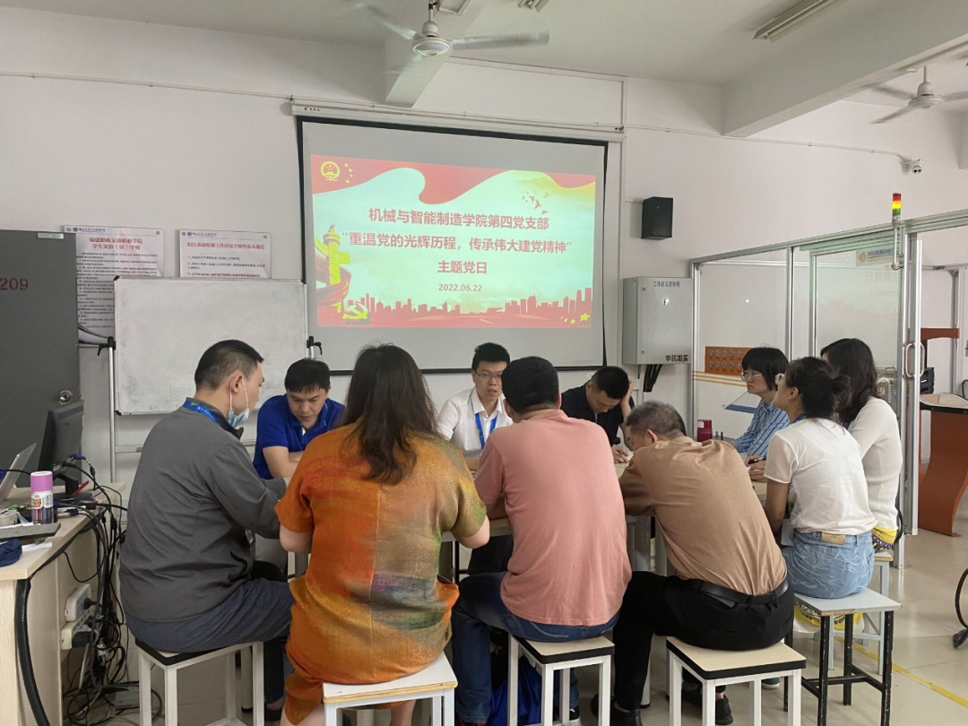 2022年06月22日,機械與智能制造學(xué)院第四黨支部在26#209召開以“重溫黨的光輝歷程,傳承偉大建黨精神”為主題的支部黨日活動,黨支部書記王水發(fā)同志帶領(lǐng)大家共同學(xué)習(xí)領(lǐng)悟。