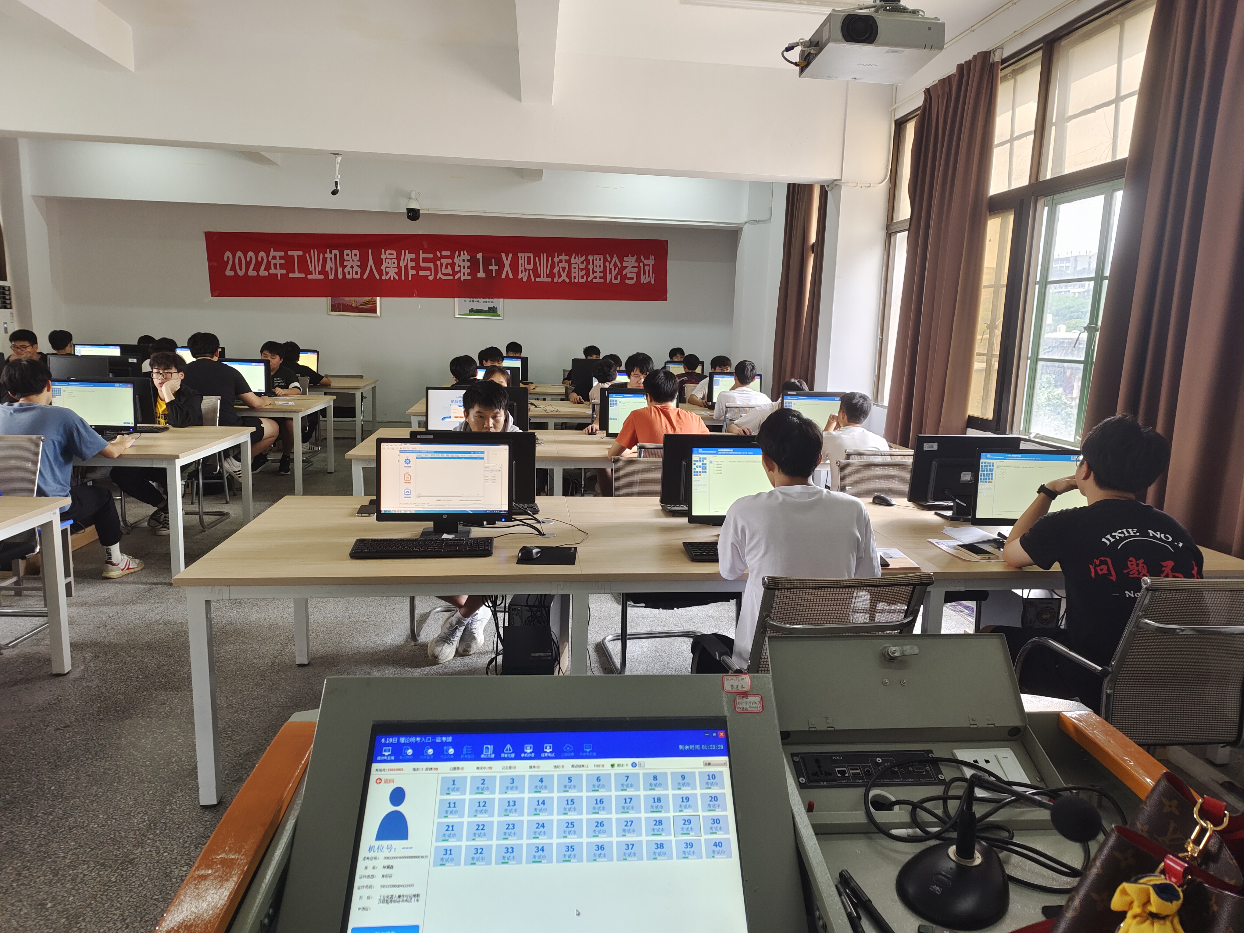 為貫徹落實(shí)《國(guó)家職業(yè)教育改革實(shí)施方案》和《關(guān)于在院校實(shí)施“學(xué)歷證書(shū)若干職業(yè)技能等級(jí)證書(shū)”制度試點(diǎn)方案》等文件精神。我校與2022年6月19日、26日分別進(jìn)行了工業(yè)機(jī)器人操作與運(yùn)維1+X證書(shū)試點(diǎn)理論考試、實(shí)操考試。本次考證對(duì)象為20級(jí)工業(yè)機(jī)器人技術(shù)專業(yè)學(xué)生共計(jì)80人,圓滿完成了本年度的考核。