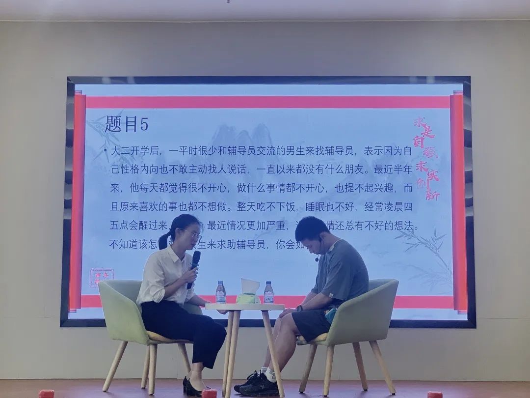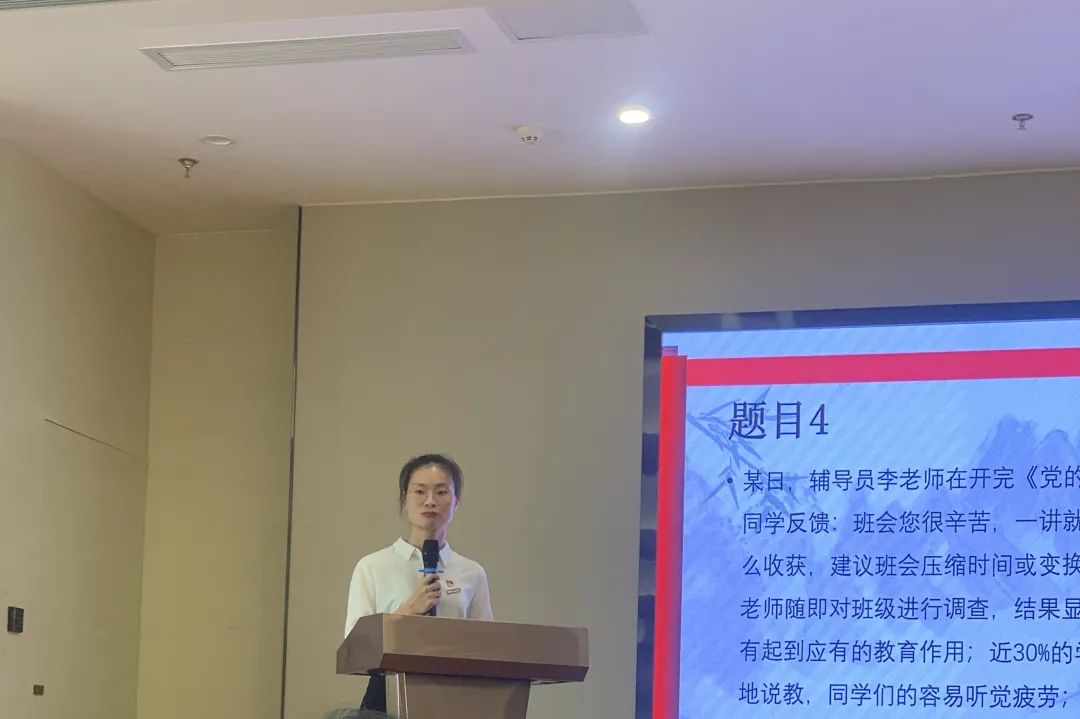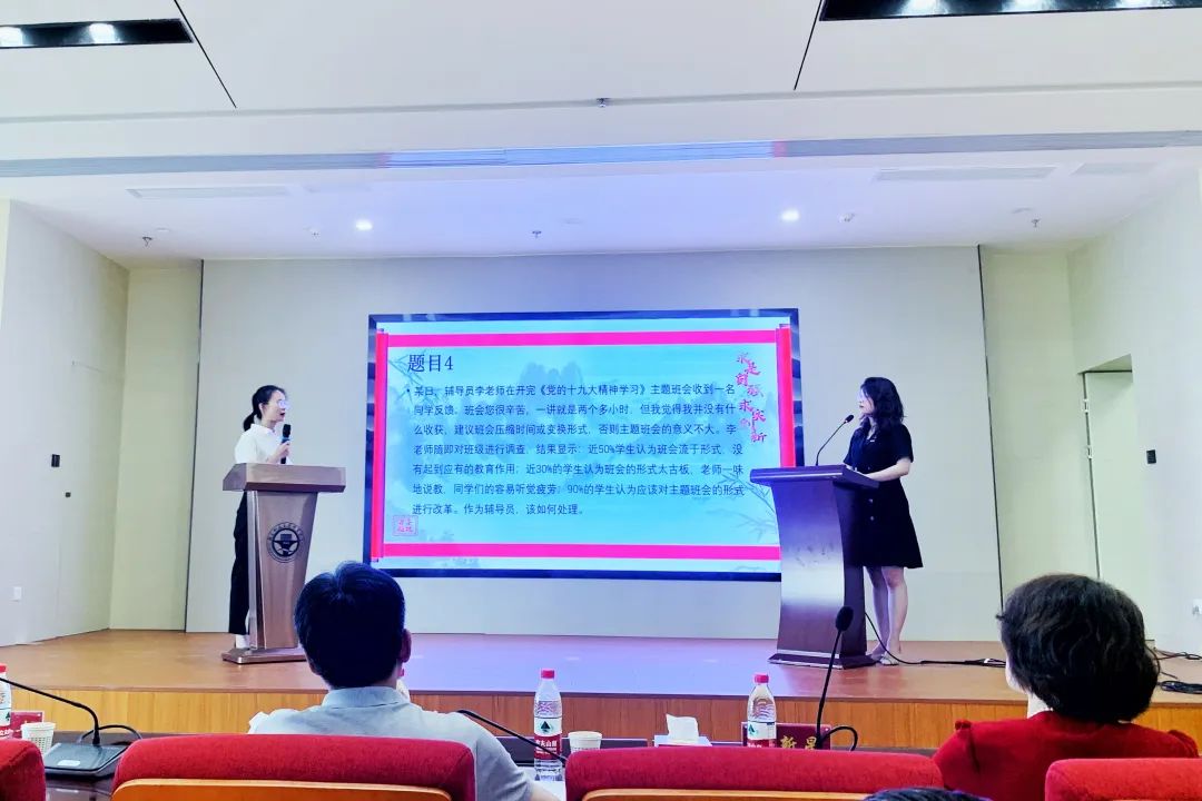 比賽過程中,各位參賽選手準備充分、沉穩(wěn)應(yīng)對,用出色的表現(xiàn)高度還原了開展大學生思想政治工作的日常情景,共同研討了如何更好地圍繞學生、關(guān)照學生、服務(wù)學生的工作思路。其中,我院輔導員張舒姨憑借扎實的理論功底、過硬的專業(yè)素養(yǎng)、出色的賽場表現(xiàn),榮獲三等獎。
