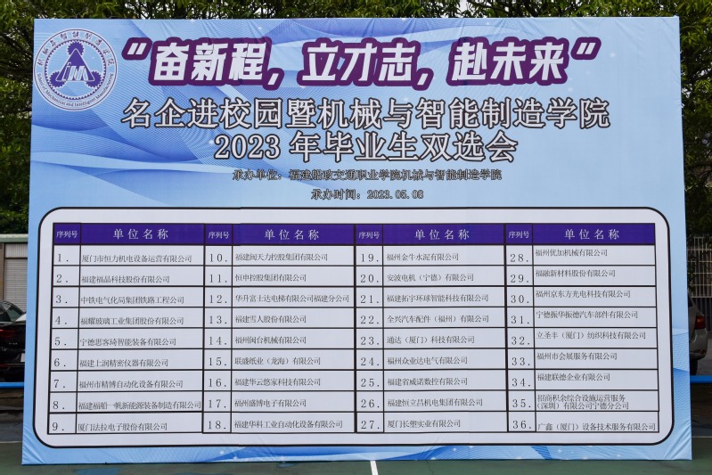 為扎實(shí)開展學(xué)習(xí)貫徹習(xí)近平新時(shí)代中國特色社會(huì)主義思想主題教育,牢牢把握“學(xué)思想、強(qiáng)黨性、重實(shí)踐、建新功”的總要求,貫徹落實(shí)黨中央、國務(wù)院關(guān)于高校畢業(yè)生就業(yè)工作的決策部署,扎實(shí)推進(jìn)我院2023屆畢業(yè)生就業(yè)工作,積極響應(yīng)團(tuán)中央號(hào)召開展“共青團(tuán)促進(jìn)大學(xué)生就業(yè)行動(dòng)”,為用人單位和畢業(yè)生搭建供需橋梁,服務(wù)大學(xué)生實(shí)習(xí)就業(yè)和融入社會(huì),我院舉辦“福建船政交通職業(yè)學(xué)院機(jī)械與智能制造學(xué)院2023屆畢業(yè)生夏季雙選會(huì)”,為我院即將畢業(yè)的2023屆畢業(yè)生聚合優(yōu)質(zhì)就業(yè)資源,引導(dǎo)同學(xué)們積極投身社會(huì)實(shí)踐、掌握求職技巧,促進(jìn)畢業(yè)生高質(zhì)量就業(yè)。