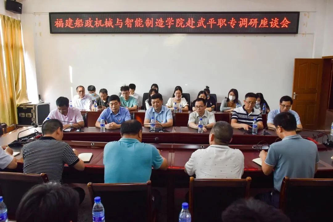 調(diào)研會上,劉明遠(yuǎn)校長對我院一行人的到來表示熱烈歡迎,并簡要介紹了學(xué)校的基本情況,概述了在與福建船政交通職業(yè)學(xué)院合作后,學(xué)校提質(zhì)發(fā)展的腳步,學(xué)校結(jié)合工作實際,致力于將專業(yè)建設(shè)、教育科研與當(dāng)?shù)禺a(chǎn)業(yè)融合發(fā)展,在人才培養(yǎng)、應(yīng)用研究、社會服務(wù)和文化建設(shè)等方面發(fā)揮優(yōu)勢與特色。我院黨總支書記林少丹及學(xué)院院長楊開懷也對武平中專職業(yè)學(xué)校的熱情歡迎表示了感謝,同時希望在后續(xù)的校校合作中,取得更進(jìn)一步的成效。