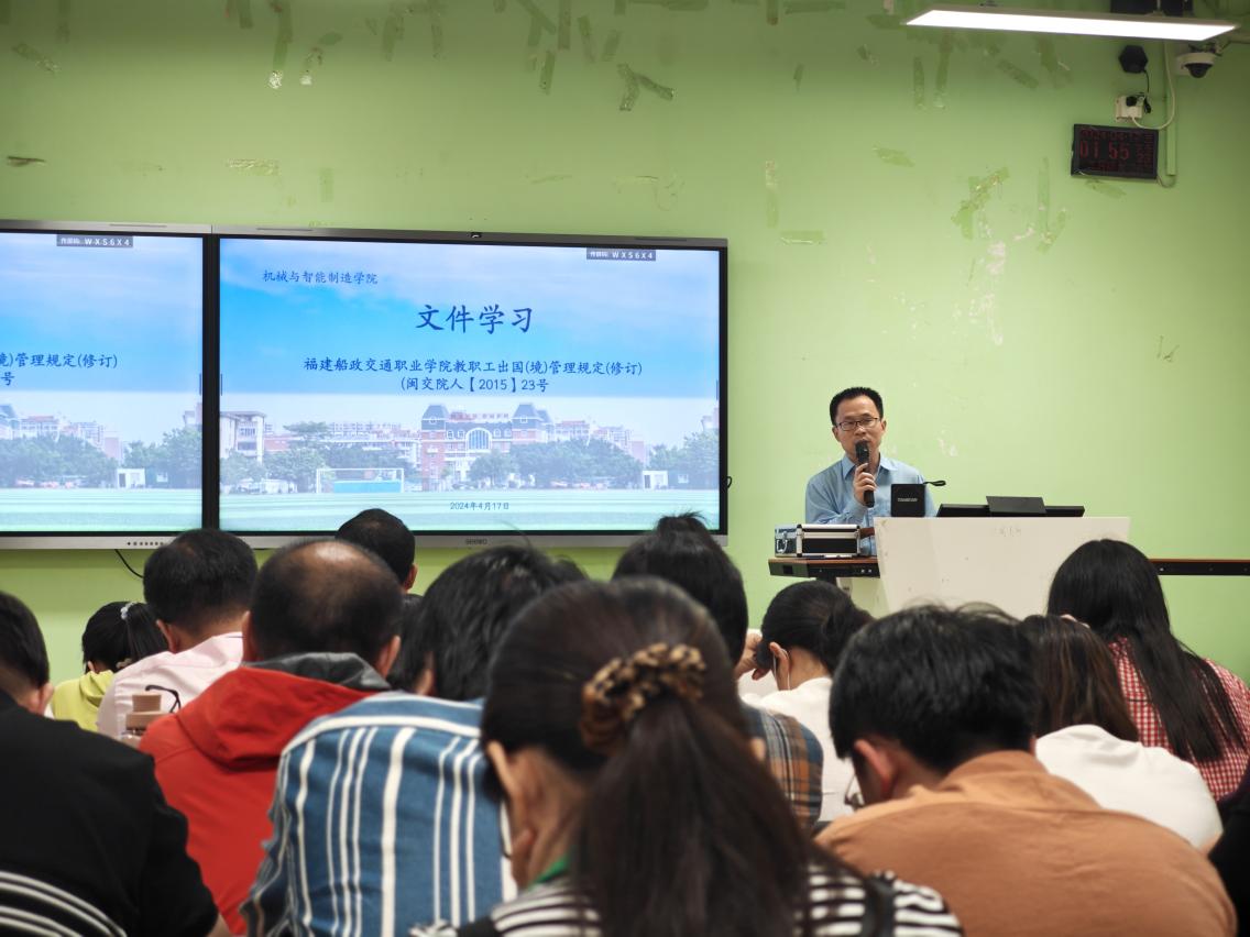 4月17日,機(jī)械與智能制造學(xué)院教職工例會(huì)專題學(xué)習(xí)了福建船政交通職業(yè)學(xué)院教職工出國(guó)(境)管理規(guī)定(修訂)》等相關(guān)文件。以完善出國(guó)境證照管理為抓手,不斷加強(qiáng)干部監(jiān)督工作。