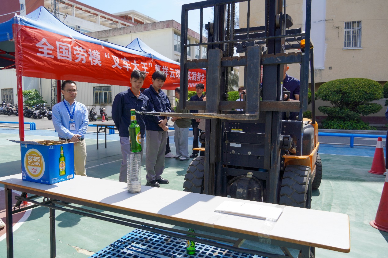 (圖6:曹祥云技能大師進(jìn)行叉車開瓶蓋技能展示)
