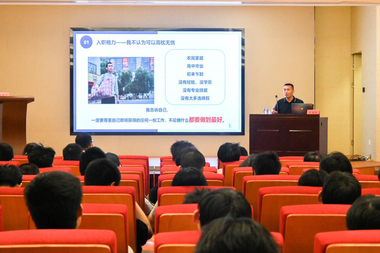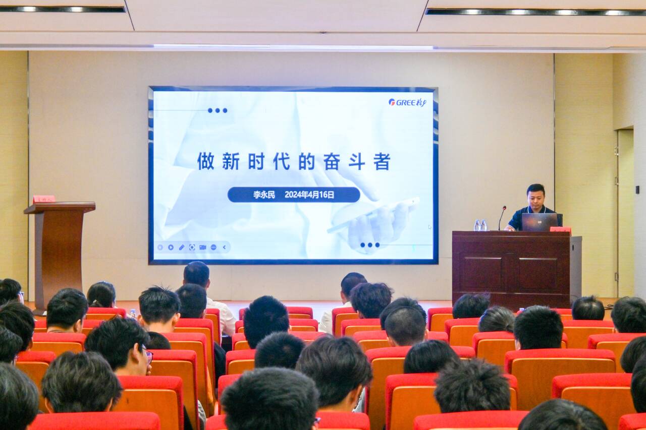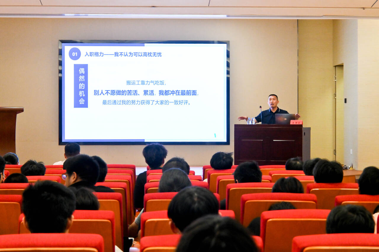 結(jié)束了精彩絕倫的叉車技能展示后,曹祥云技能大師為我院師生作了題為“‘叉車大王’的堅持與熱愛”的主題講座,深刻闡釋了“何為時代楷模”、“何為工匠精神”,他圍繞入職格力前后的個人經(jīng)歷,培訓(xùn)學(xué)習(xí)、團(tuán)隊管理等方面的心路歷程展開分享并鼓勵同學(xué)們要將技能報國的夢想和信念根植于心中,將工匠精神融入日常的學(xué)習(xí)實踐中,精益求精、專心致志,在平凡崗位上做出不平凡的業(yè)績,爭當(dāng)新時代的奮斗者。