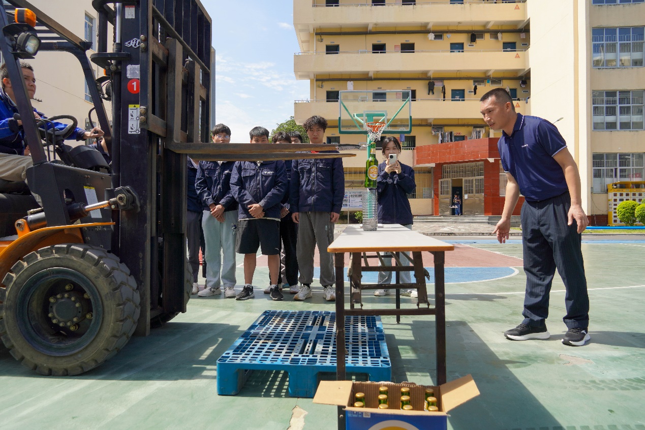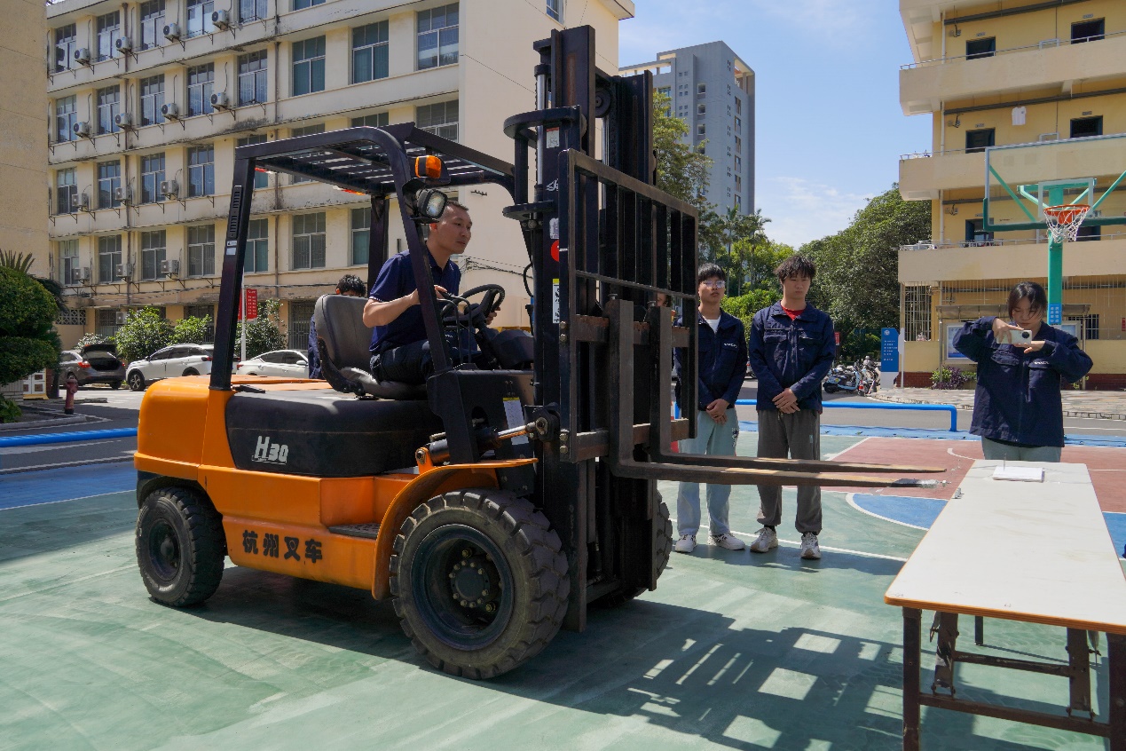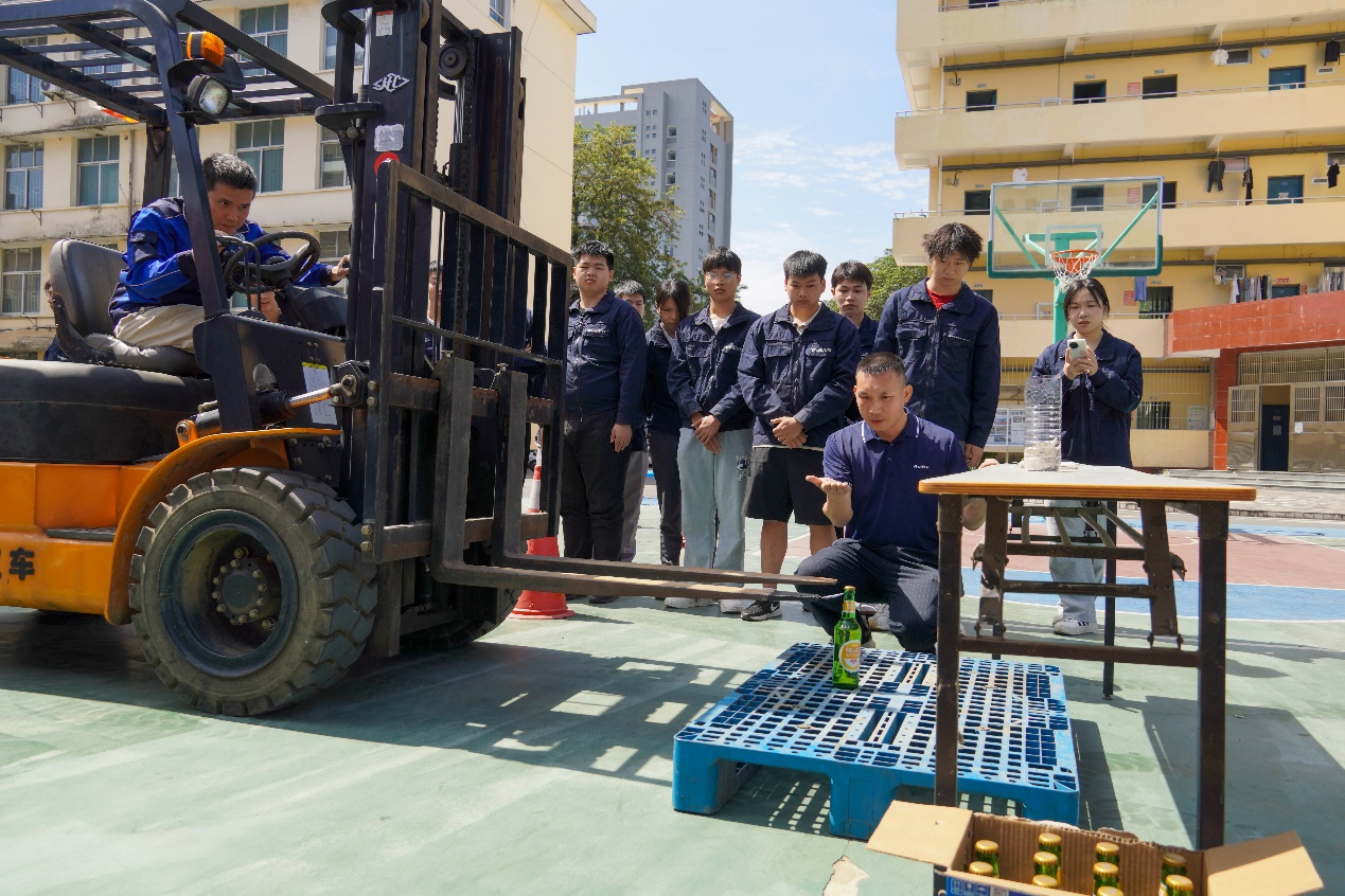 吉尼斯叉車技術(shù)紀(jì)錄成功挑戰(zhàn)者、全國叉車技能冠軍曹祥云技能大師在福道園工程機(jī)械與港口設(shè)備實訓(xùn)室為同學(xué)們進(jìn)行了一場精彩絕倫的叉車技能現(xiàn)場教學(xué)。“叉車運酒瓶、叉車開瓶蓋、叉車疊螺母、叉車穿針孔”等CCTV-1《挑戰(zhàn)不可能》節(jié)目中的極限絕活將曹祥云大師精湛的叉車技術(shù)展現(xiàn)得淋漓盡致。在教學(xué)過程中,曹祥云大師還親自指導(dǎo)師生進(jìn)行叉車叉運木箱,倒車?yán)@樁等實操項目,并就叉車駕駛“快、準(zhǔn)、穩(wěn)”等綜合技術(shù)水平的練就進(jìn)行了生動的講解。他勉勵同學(xué)們要堅定走技能成才、技能報國之路,珍惜學(xué)習(xí)時光,努力學(xué)習(xí)、積極實踐、苦練內(nèi)功,掌握扎實專業(yè)理論與過硬專業(yè)技術(shù)本領(lǐng),全面提升自身綜合素質(zhì),用時不我待的人生態(tài)度書寫匠心筑夢的青春篇章。