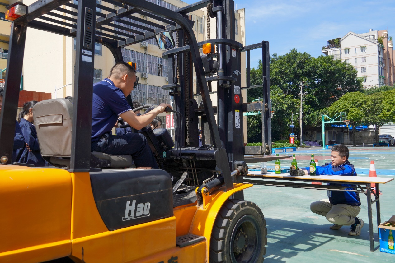 (圖4:曹祥云技能大師進(jìn)行叉車運酒瓶技能展示)