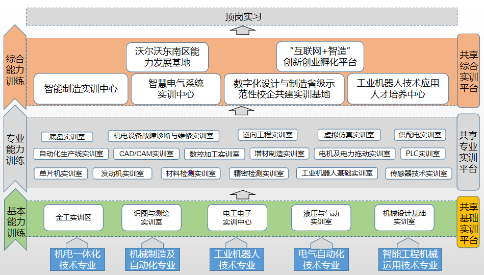圖3 機(jī)械與智能制造專業(yè)群組群共享實(shí)訓(xùn)體系圖