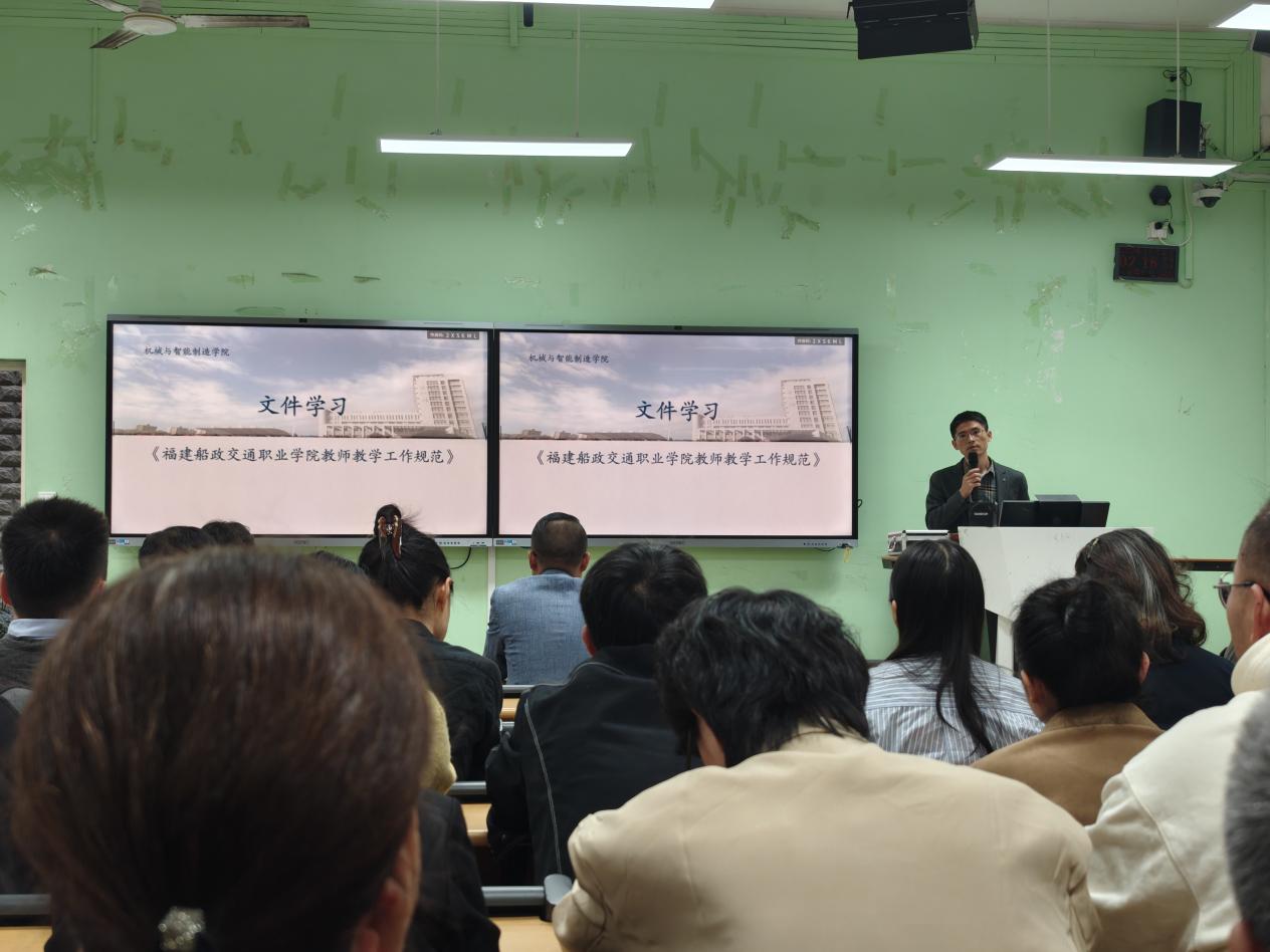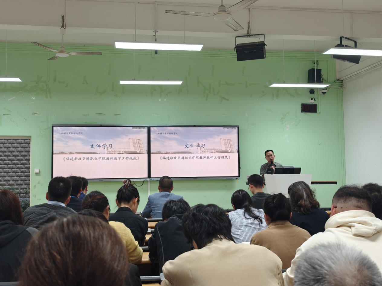 2024年11月13日,機(jī)械與智能制造學(xué)院組織全體教職工學(xué)習(xí)《福建船政交通職業(yè)學(xué)院教師教學(xué)工作規(guī)范》。曾思通副院長(zhǎng)帶領(lǐng)全體教職工學(xué)習(xí)文件,共同學(xué)習(xí)文件中規(guī)定的教師教學(xué)要做好教學(xué)準(zhǔn)備,包括培養(yǎng)方案,授課計(jì)劃,要做好課堂教學(xué),對(duì)各教學(xué)環(huán)節(jié)時(shí)間應(yīng)分配恰當(dāng),融“教、學(xué)、做”為一體,鼓勵(lì)學(xué)生獨(dú)立思考,激發(fā)學(xué)生的主動(dòng)性。他強(qiáng)調(diào),教師在人才培養(yǎng)過程中起主導(dǎo)作用,要求全體教師提高政治思想水平、業(yè)務(wù)能力和教學(xué)水平,規(guī)范工作,增強(qiáng)工作責(zé)任心,不斷提高教學(xué)質(zhì)量,培養(yǎng)合格人才。