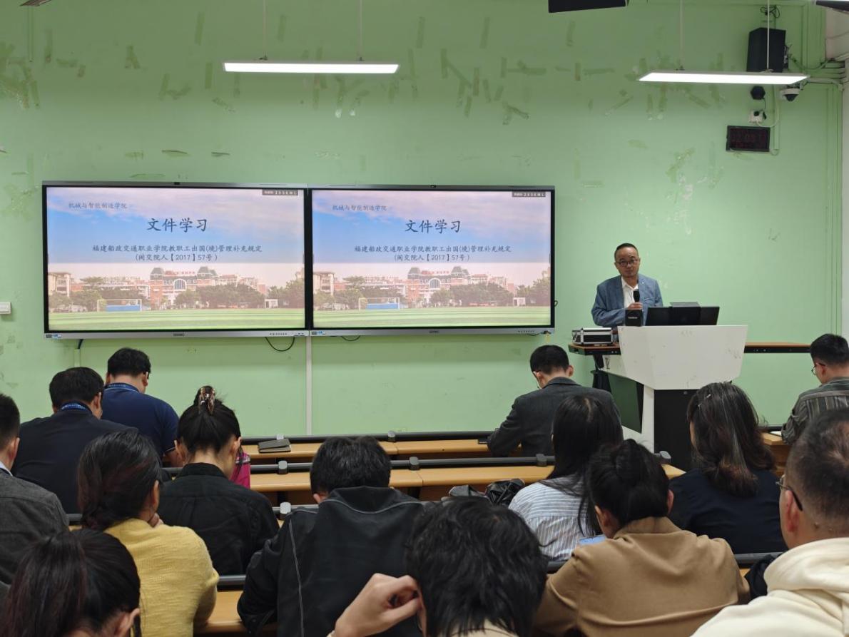 為進(jìn)一步規(guī)范我院教職工出國(guó)(境)管理工作,2024年11月13日,機(jī)械與智能制造學(xué)院組織全體教職工召開(kāi)專(zhuān)題學(xué)習(xí)會(huì)議,會(huì)議由陳貴清副院長(zhǎng)領(lǐng)學(xué),全體教職員工參加了學(xué)習(xí)。