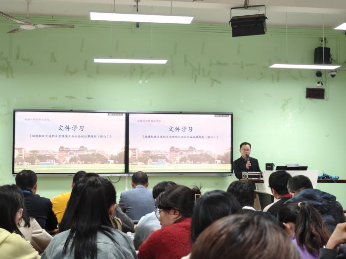 為進一步規(guī)范學院管理,提升治理效能,近日,我院組織全體教職工深入開展了《中共福建船政交通職業(yè)學院委員會會議議事規(guī)則(修訂)》和《福建船政交通職業(yè)學院院長辦公會議議事規(guī)則(修訂)》兩個制度的學習活動。本次活動由學院院長楊開懷領(lǐng)學,旨在確保每位教職工都能深刻領(lǐng)會制度精神,并在實際工作中嚴格執(zhí)行。