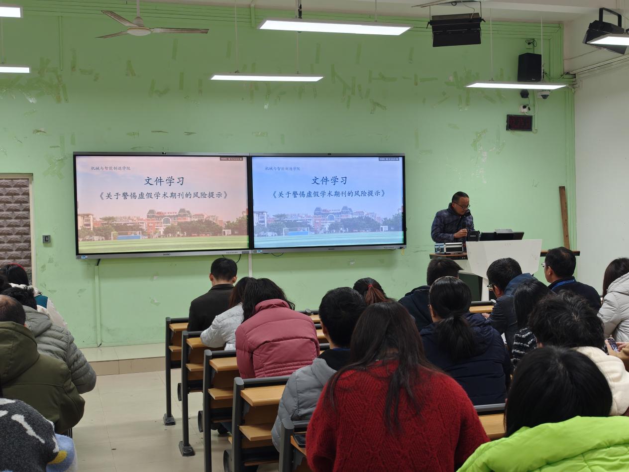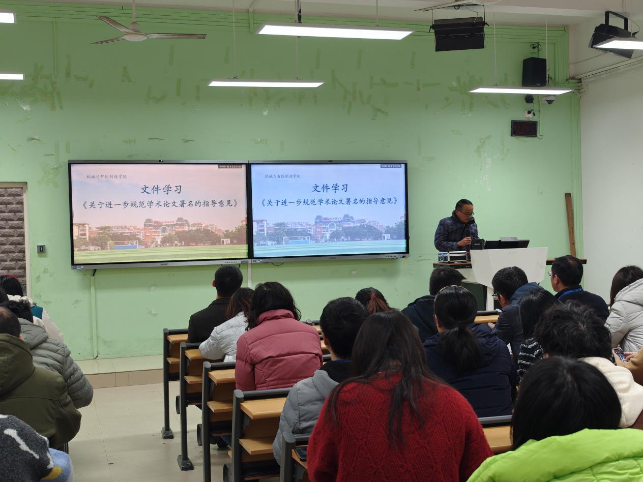 為進(jìn)一步加強(qiáng)科研誠信建設(shè),營造風(fēng)清氣正的學(xué)術(shù)環(huán)境,培養(yǎng)良好的學(xué)風(fēng),機(jī)械與智能制造學(xué)院于2025年2月19日下午組織全體教職工開展關(guān)于加強(qiáng)科研誠信與學(xué)風(fēng)建設(shè)的專題文件學(xué)習(xí)活動。此次活動旨在深入貫徹落實(shí)國家關(guān)于科研誠信和學(xué)風(fēng)建設(shè)的重要指示精神,推動學(xué)院科研與教育工作高質(zhì)量發(fā)展。學(xué)習(xí)會議由楊開懷院長主持,陳貴清副院長領(lǐng)學(xué)。