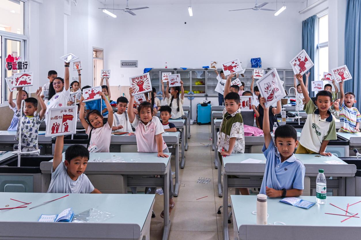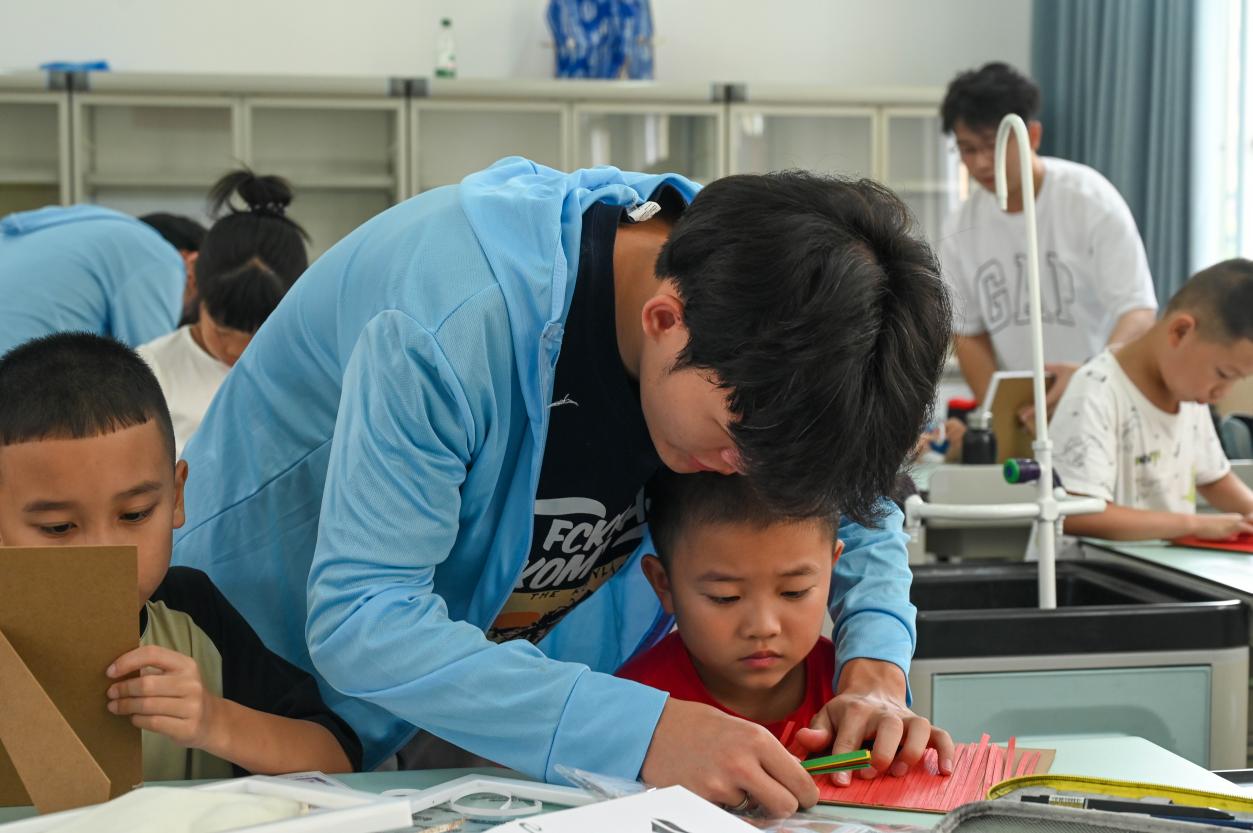 實(shí)踐團(tuán)成員們懷揣著高度的責(zé)任感與使命感,為小學(xué)中低年級(jí)留守兒童精心策劃了一系列覆蓋德智體美勞全面發(fā)展的課程。課程內(nèi)容不僅包含思想引領(lǐng)與文化傳承的深刻內(nèi)涵,還融入科技創(chuàng)新的探索樂趣、藝術(shù)素養(yǎng)的熏陶培育以及勞動(dòng)教育的實(shí)踐體驗(yàn)。這些精心打磨的課程,不僅為留守兒童們構(gòu)筑了一段既難忘又充實(shí)的“五彩五育”研學(xué)之旅,還讓他們?cè)跉g聲笑語(yǔ)中收獲知識(shí)、提升能力,原本平淡的暑期生活也因此煥發(fā)出別樣的光彩,如同被點(diǎn)亮的星辰,閃耀著成長(zhǎng)的光芒。