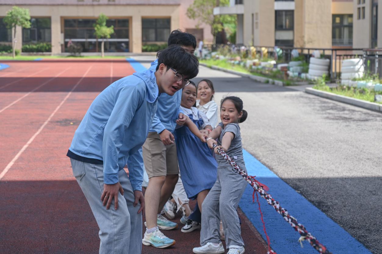 在“黃色動(dòng)能課堂”中,實(shí)踐團(tuán)以團(tuán)隊(duì)協(xié)作為核心,從激情四溢的團(tuán)體拔河,到默契十足的兩人三足賽跑,再到考驗(yàn)團(tuán)隊(duì)默契與策略的珠行萬里挑戰(zhàn),每一項(xiàng)游戲都精心設(shè)計(jì),旨在讓留守兒童們掙脫教室的束縛,投身于戶外的廣闊天地。在這片充滿活力的空間里,孩子們?cè)跉g笑與汗水中強(qiáng)健體魄,于團(tuán)結(jié)協(xié)作中深化友誼,更在公平而激烈的良性競(jìng)爭(zhēng)中,學(xué)會(huì)了堅(jiān)持與成長(zhǎng),收獲了寶貴的人生經(jīng)驗(yàn)與自我超越的喜悅。