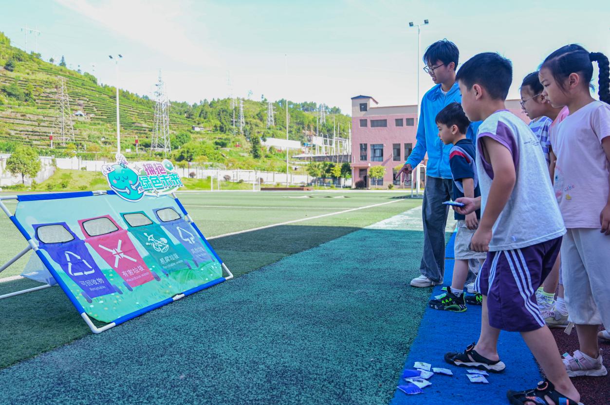 (實(shí)踐團(tuán)成員給小朋友們上綠色環(huán)保課堂)