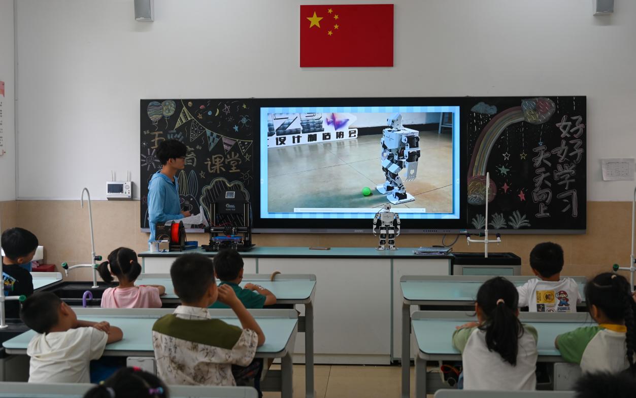 (實(shí)踐團(tuán)成員給小朋友們帶來的機(jī)器人演示課堂)