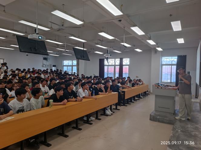 2025年9月17日,工業(yè)機(jī)器人技術(shù)專業(yè)教研室組織2025級(jí)249名新生于北區(qū)26號(hào)樓602教室舉辦專業(yè)介紹會(huì),由教研室主任高華主持,教研室全體教師出席,并邀請(qǐng)校企合作企業(yè)寧德思客琦智能裝備有限公司代表和大三學(xué)生代表參加。介紹會(huì)旨在幫助新生全面了解專業(yè)內(nèi)涵、樹立學(xué)習(xí)目標(biāo)、科學(xué)規(guī)劃學(xué)業(yè)與職業(yè)發(fā)展,共分為專業(yè)介紹、企業(yè)專家講座和世賽金獎(jiǎng)學(xué)生分享三個(gè)環(huán)節(jié)。