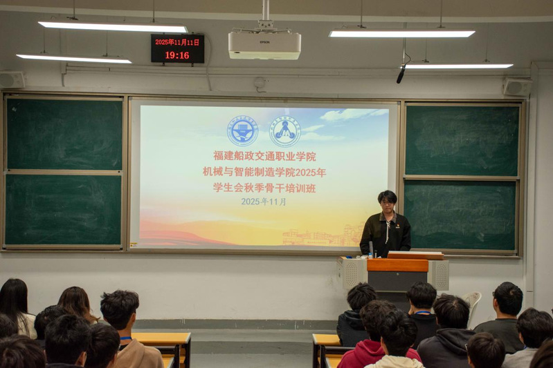 為深入學(xué)習(xí)貫徹黨的二十屆四中全會(huì)精神,落實(shí)習(xí)近平總書(shū)記關(guān)于教育、科技、人才工作的重要指示批示精神,筑牢學(xué)生骨干政治根基、提升綜合能力,2025年11月11日,福建船政交通職業(yè)學(xué)院機(jī)械與智能制造學(xué)院在福道園八號(hào)樓第一階梯教室啟動(dòng)秋季學(xué)生骨干培訓(xùn)班第一講。學(xué)院團(tuán)委、學(xué)生會(huì)成員及各班級(jí)團(tuán)支部學(xué)生骨干代表齊聚一堂,共學(xué)精神、共話使命。