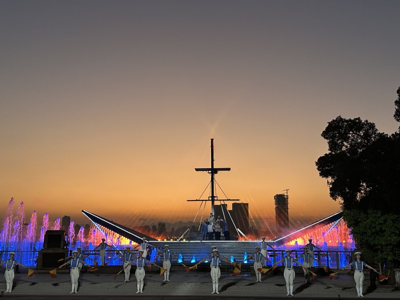 演出尾聲,劇場(chǎng)墻體轟然打開(kāi),閩江實(shí)景與江面上的現(xiàn)代化艦艇映入眼簾,與劇中百年前的歷史場(chǎng)景形成跨越時(shí)空的同框呼應(yīng)。從百年屈辱到盛世華章,強(qiáng)烈的視覺(jué)沖擊與情感共鳴令不少黨員熱淚盈眶,真切體會(huì)到船政精神穿越時(shí)空的強(qiáng)大生命力,更深刻領(lǐng)悟到新時(shí)代教育工作者肩負(fù)的使命擔(dān)當(dāng)。