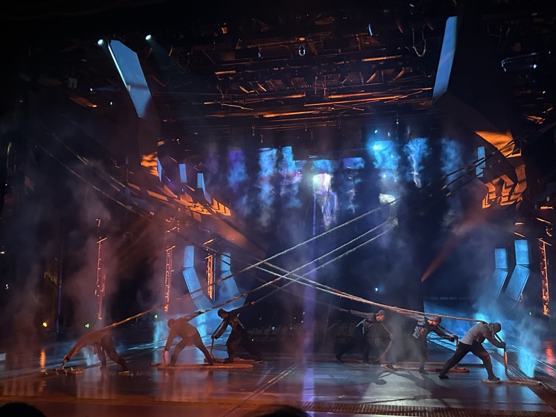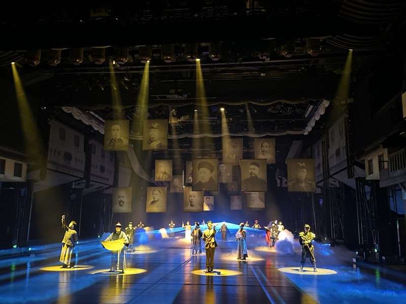 《最憶船政》以百年船政發(fā)展史為敘事核心,依托老廠房獨(dú)特空間優(yōu)勢(shì),打造出科技感十足的折疊劇場(chǎng)。在約70分鐘的演出中,可移動(dòng)的觀眾席化身為“時(shí)光之船”,載著黨員教師們沉浸式穿梭于各個(gè)歷史場(chǎng)景:船政學(xué)堂里的朗朗書(shū)聲、萬(wàn)年青號(hào)軍艦下水的震撼瞬間、甲午海戰(zhàn)的悲壯征程……聲光電技術(shù)與演員的真情演繹相互交織,讓塵封的歷史變得鮮活可感,生動(dòng)再現(xiàn)了船政先輩們實(shí)業(yè)救國(guó)、向海圖強(qiáng)的壯志豪情。