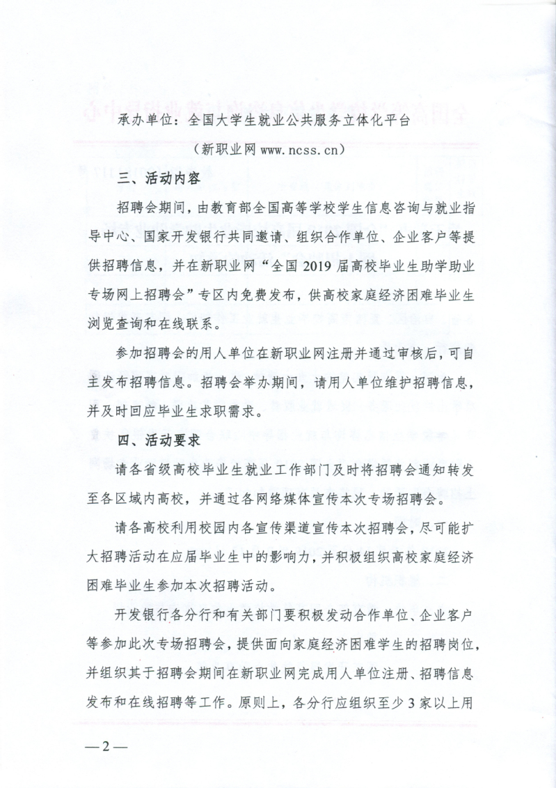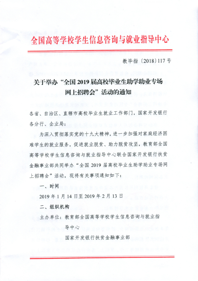 關(guān)于舉辦全國2019屆高校畢業(yè)生助學(xué)助業(yè)專場(chǎng)網(wǎng)上招聘會(huì)活動(dòng)的通知