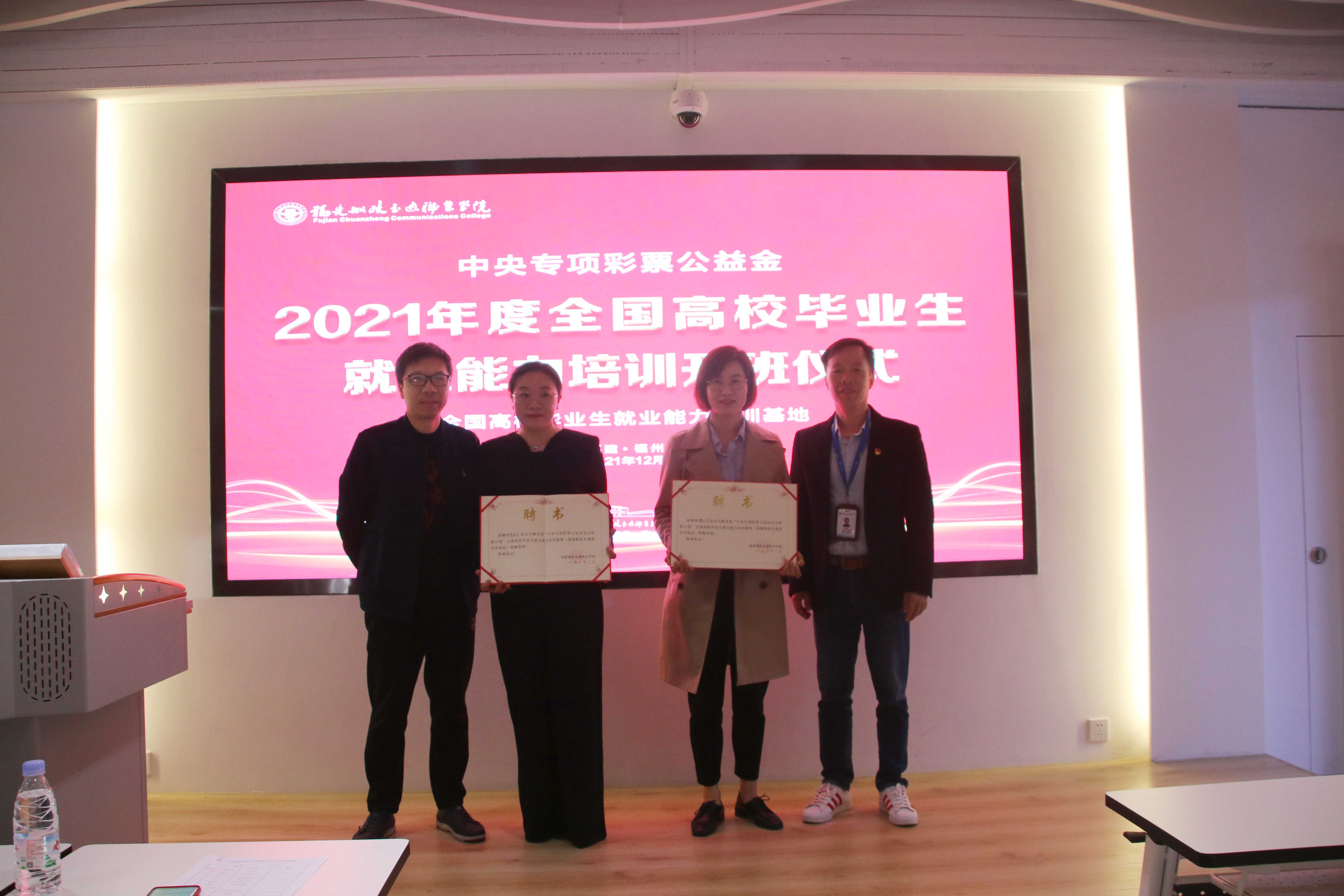 2021年12月11日,“中央專項(xiàng)彩票公益金宏志助航計(jì)劃”全國高校畢業(yè)生就業(yè)能力培訓(xùn)開班儀式在福建船政交通職業(yè)學(xué)院黨建館舉行。儀式上,福建船政交通職業(yè)學(xué)院學(xué)工處王心金處長和福建幼兒師范高等??茖W(xué)院創(chuàng)新創(chuàng)業(yè)與實(shí)訓(xùn)中心周海林主任為培訓(xùn)導(dǎo)師頒發(fā)了聘書。