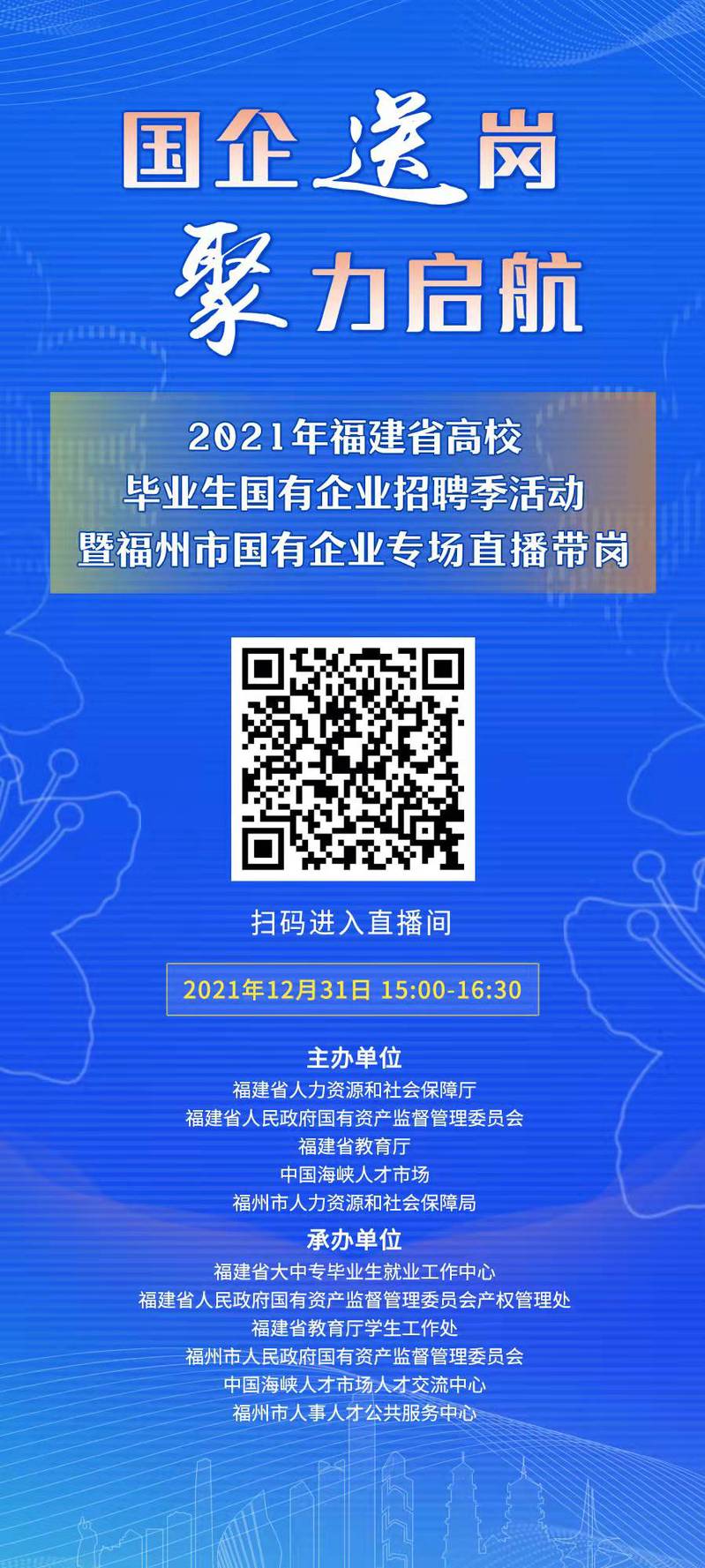 2021年福建省高校畢業(yè)生國(guó)有企業(yè)招聘季活動(dòng)暨福州市國(guó)有企業(yè)專場(chǎng)直播帶崗活動(dòng)