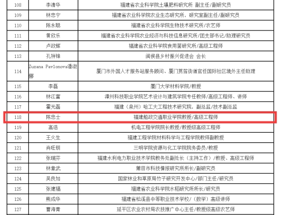 此外,福建省科技特派員工作聯(lián)席會議成員單位還聯(lián)合對150名優(yōu)秀科技特派員予以通報表揚,我院機械與智能制造學(xué)院陳忠士教授獲通報表揚。