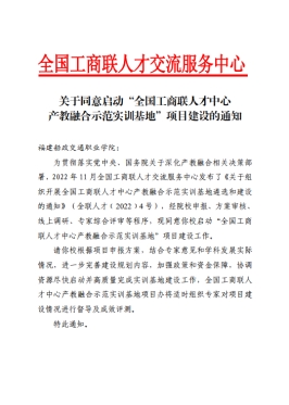 2023年3月16日,學(xué)校收到全國工商聯(lián)人才交流服務(wù)中心《關(guān)于同意啟動“全國工商聯(lián)人才中心產(chǎn)教融合示范實(shí)訓(xùn)基地”項(xiàng)目建設(shè)的通知》文件,成功入選首批“全國工商聯(lián)人才中心產(chǎn)教融合示范實(shí)訓(xùn)基地”。