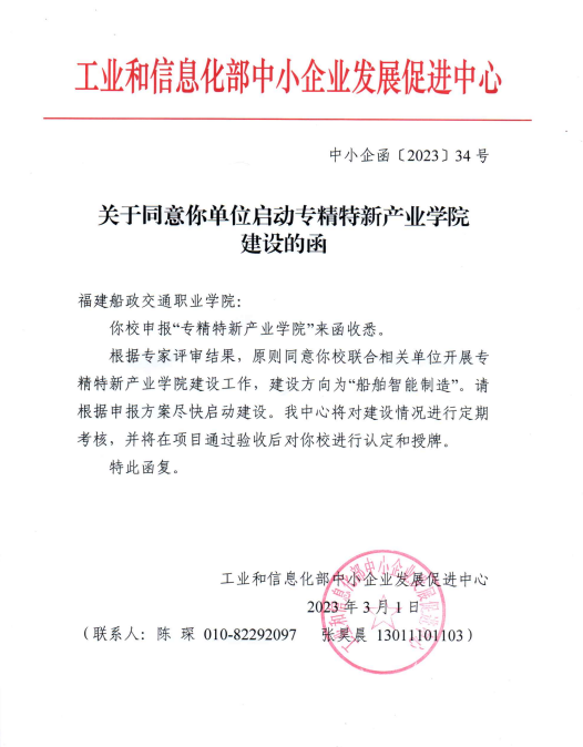 近日,工業(yè)和信息化部中小企業(yè)發(fā)展促進中心公布首批“專精特新產(chǎn)業(yè)學院”啟動建設名單,我校申報“船舶智能制造專精特新產(chǎn)業(yè)學院”經(jīng)過歷時半年的初審、線上考察、專家初評、專家會評等4輪競爭性遴選,最終從800多所高校中脫穎而出成功獲批立項建設。此次“專精特新產(chǎn)業(yè)學院”獲批建設,標志著我校在產(chǎn)教融合校企合作提質(zhì)升級上又邁出了堅實的步伐。