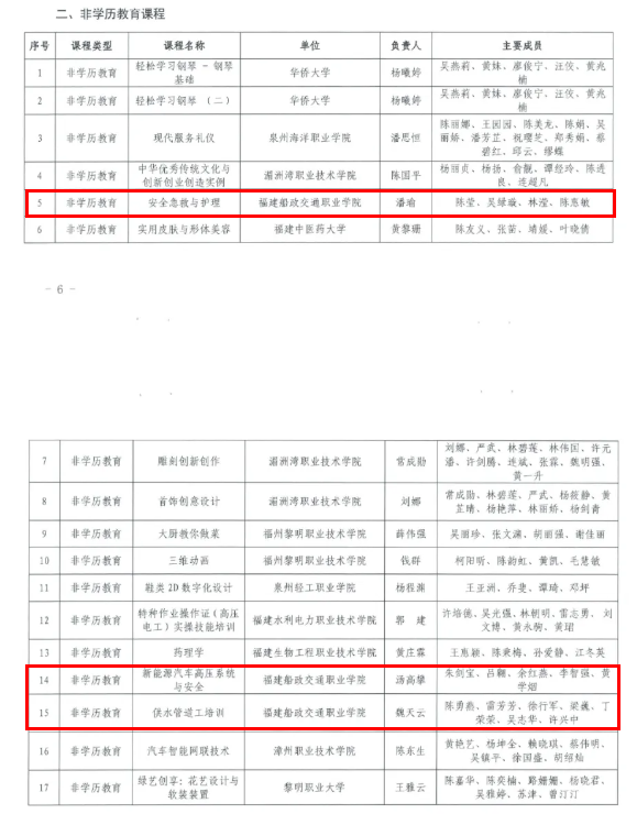 近日,福建省終身教育促進(jìn)委員會公布《2024年省級繼續(xù)教育數(shù)字化精品課程》,共認(rèn)定139門課程為2024年省級繼續(xù)教育數(shù)字化精品課程,其中,學(xué)歷繼續(xù)教育課程37門、非學(xué)歷教育課程41門、職業(yè)技能培訓(xùn)課程22門、社區(qū)(老年)教育課程39門。我校非學(xué)歷教育課程《安全急救與護(hù)理》《新能源汽車高壓系統(tǒng)與安全》《供水管道工培訓(xùn)》、社區(qū)(老年)教育課程《晚年出行新模式》共四門課程成功入選。