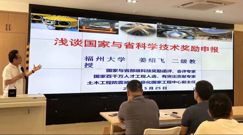 活動邀請了福州大學(xué)土木工程學(xué)院姜紹飛教授作主題講座。姜紹飛教授是國家百千萬人才工程人選、國家有突出貢獻(xiàn)中青年專家和國務(wù)院政府特殊津貼專家,并多次獲得省部級科技獎。講座以“淺談國家與省科學(xué)技術(shù)獎勵申報”為題,從國家級及省級科學(xué)獎勵設(shè)置、各類獎項申報要點、獎項提名書撰寫方法等幾方面,為參會的博士教師們作了精彩報告,大家紛紛表示受益匪淺。
