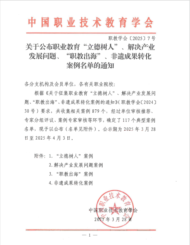 此次案例入選,彰顯了學院“雙高”建設(shè)在立德樹人與文化傳承創(chuàng)新領(lǐng)域的成果。未來,學院將繼續(xù)以“雙高計劃”為引領(lǐng),深化現(xiàn)代職業(yè)教育體系建設(shè)改革,為區(qū)域經(jīng)濟發(fā)展和產(chǎn)業(yè)轉(zhuǎn)型升級提供更有力的支撐。